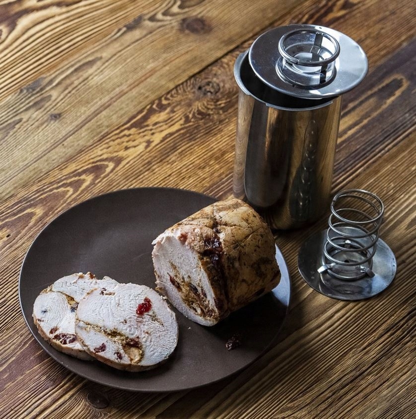 ВЕТОЧАРКА В ВОДЯНОЙ РУБАШКЕ позволяет готовить вкусные продукты на пару без необходимости использования дополнительной кастрюли. Такое решение позволяет очень легко пользоваться ветчинницей (или ветчинницей – ведь используется и такая форма).Эта специальная посуда используется для приготовления сочных мясных блюд на ужин, а также различных видов мясного ассорти и вегетарианских блюд – полезных и без химических добавок. В этой ветчиннице за один раз можно приготовить максимум 1,5 кг продуктов. Это могут быть классические ветчины (копченые и некопченые), рулеты, мясные деликатесы, мясные изделия с овощами, сухофруктами, грибами, а также веганские паштеты и т.д.
