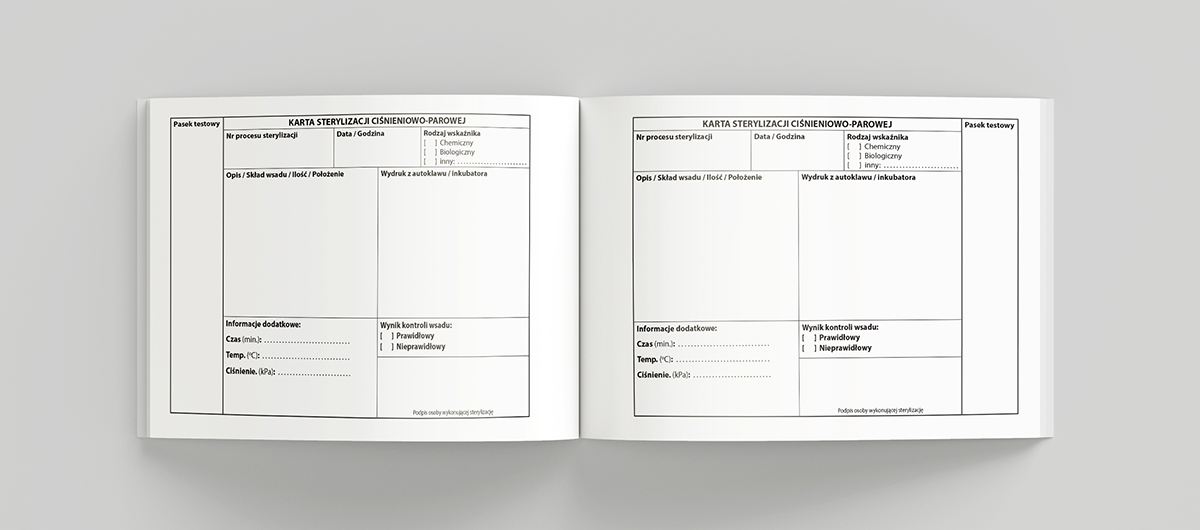 Книги по контролю за процессами стерилизации созданы для отделений, которым необходима более полная документация процесса стерилизации. Документирование процессов стерилизации является требованием, предъявляемым к каждому стоматологическому кабинету; его следует хранить не менее 10 лет.