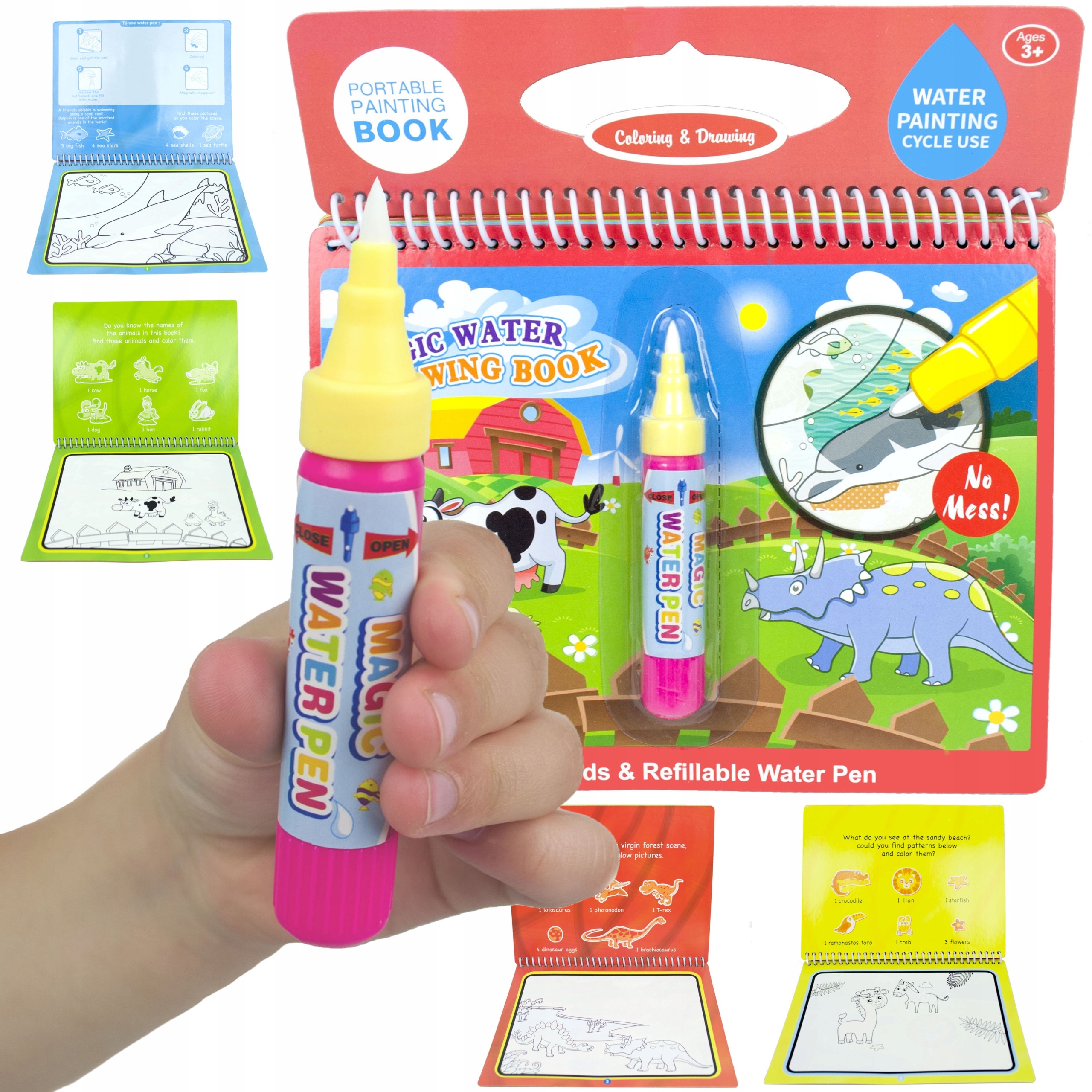 Поскольку игрушка не образует отходов и не требует дополнительных аксессуаров, она идеально подходит для путешествий на автомобиле или другом транспортном средстве. Вы можете быть уверены, что детская одежда или обивка автомобиля будут чистыми. Ручка питается от воды, поэтому не оставляет грязи. Книжка-раскраска — также отличный способ творчески провести время во время долгой поездки.