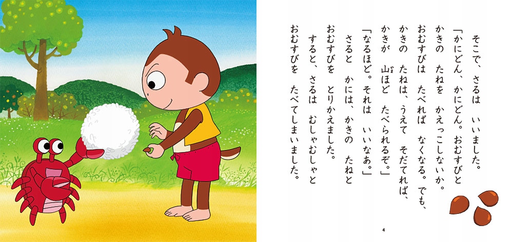 さるかにがっせん «Саку кани гассен» — это история, главными героями которой являются краб и обезьяна. Озорная обезьянка обманом обманула краба и забрала плод с дерева, которое он вырастил. Сойдет ли ей это с рук?