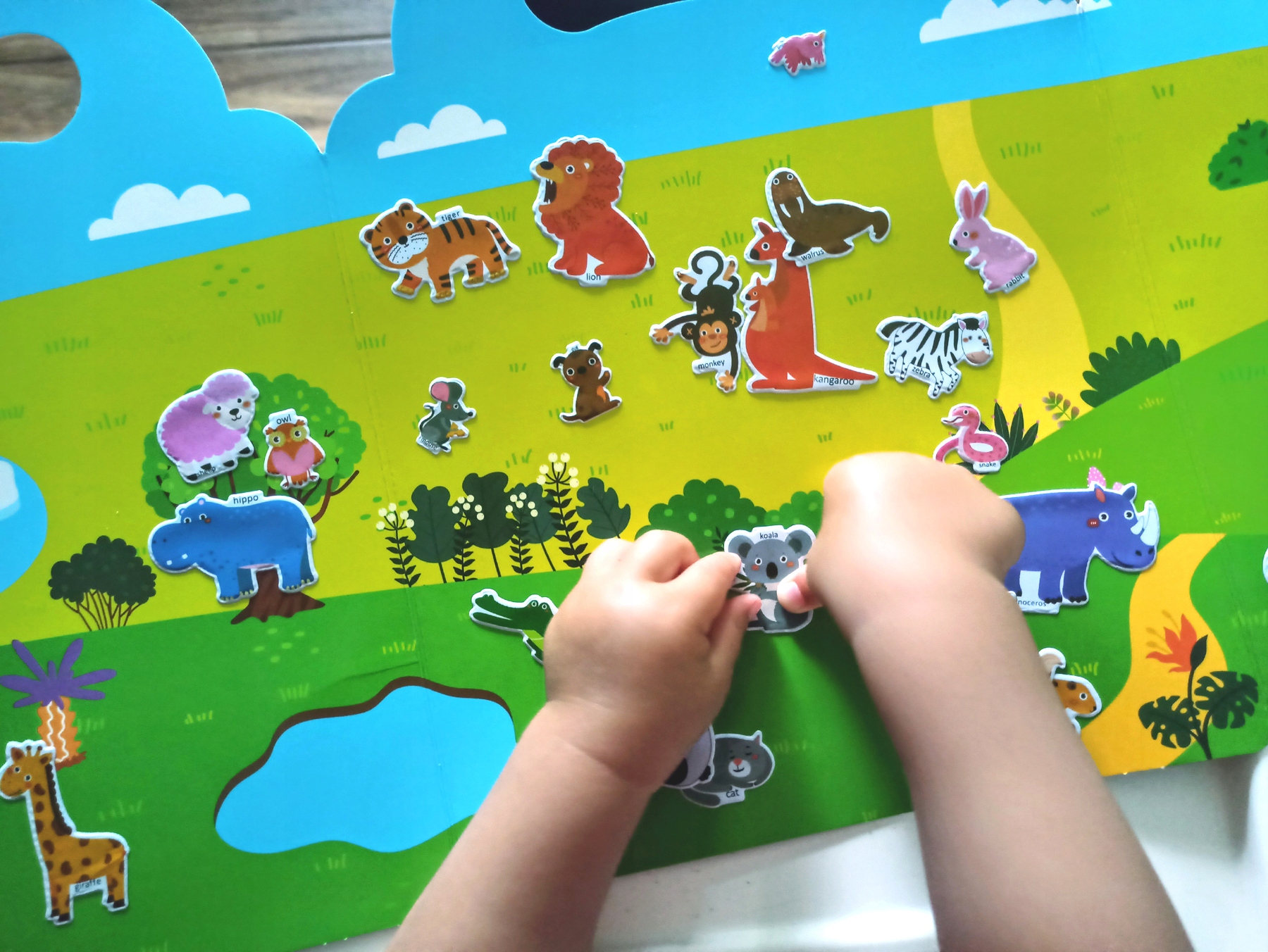 Склеивайте, очищайте и снова приклеивайте :) Создавайте свои собственные сцены, истории и узнавайте о видах животных.