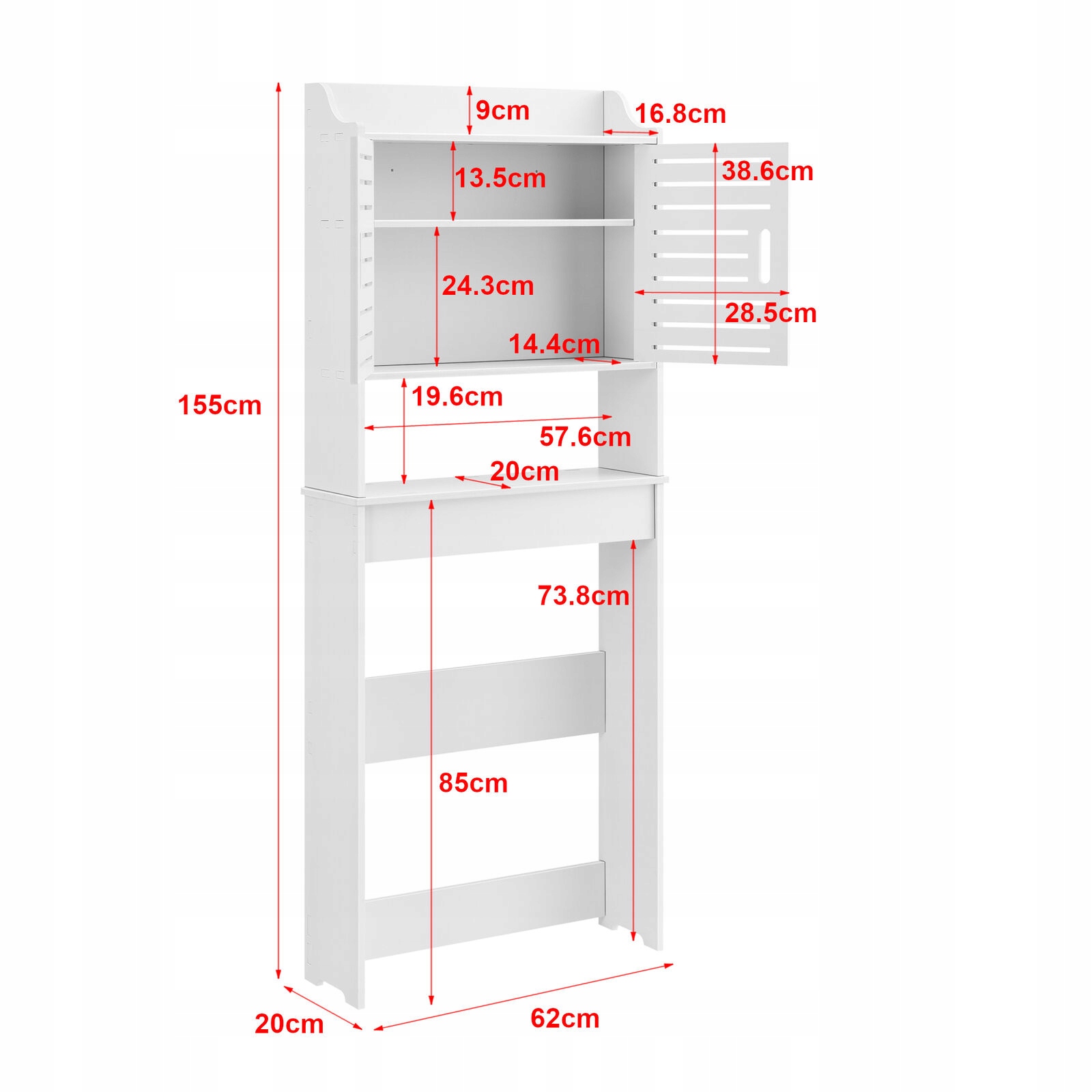 Шкафчик для ванной над унитазом - 155х62х20см - белый