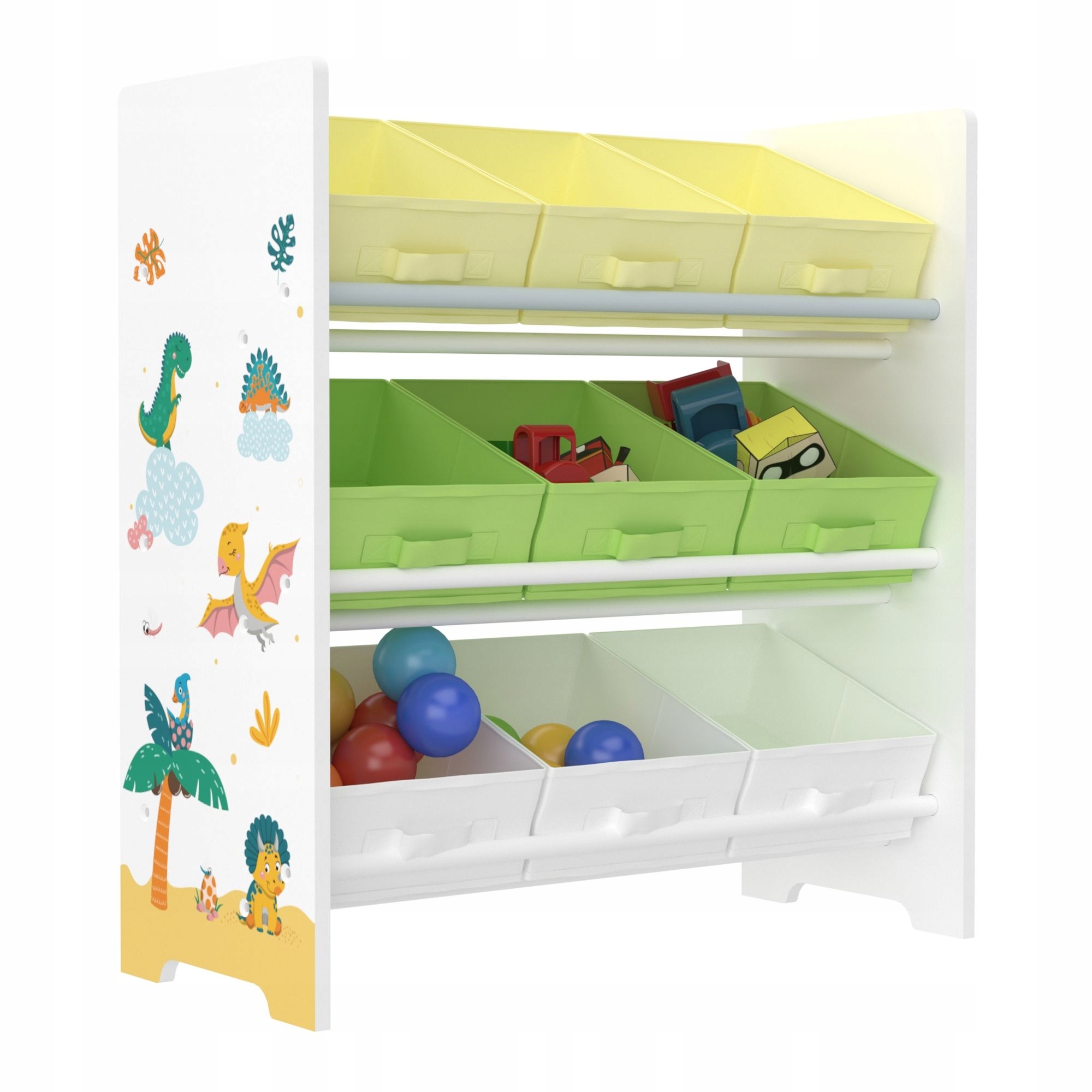 Полка для игрушек идеально подходит для детской комнаты: благодаря девяти складным контейнерам на ней достаточно места для хранения, например, игрушек, мячей, книг. Незаменимый предмет мебели для детей, имеет закругленные углы, что делает его безопасным в использовании.