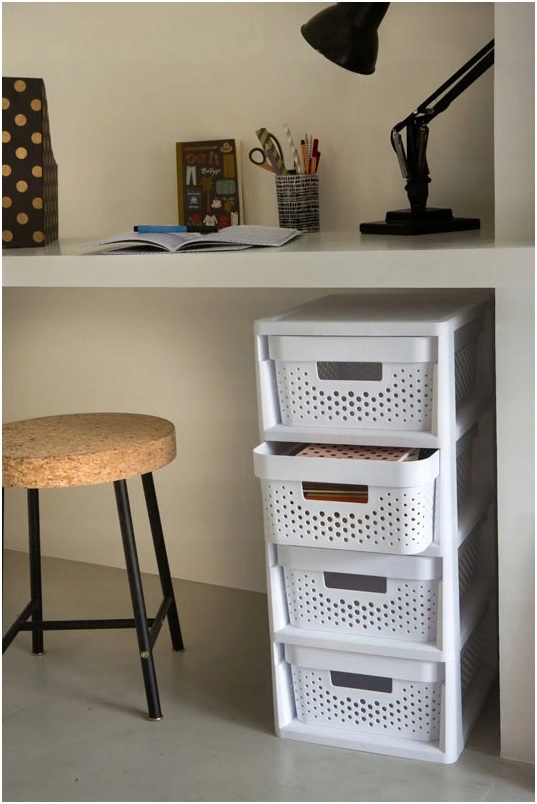 Аксессуар представляет собой элегантную полку для книг и других предметов. Материал, из которого он изготовлен. Сделано поразительно похоже на ротанг, однако он гораздо легче и прочнее ротанга. Комод имеет четыре ящика, каждый из которых имеет вместимость до 11 л! Они крепятся на специальных направляющих, поэтому их можно легко выдвигать и пополнять - например, книгами, игрушками или документами. На полке установлены колесики, что позволяет легко и быстро переместить полку в другое место.