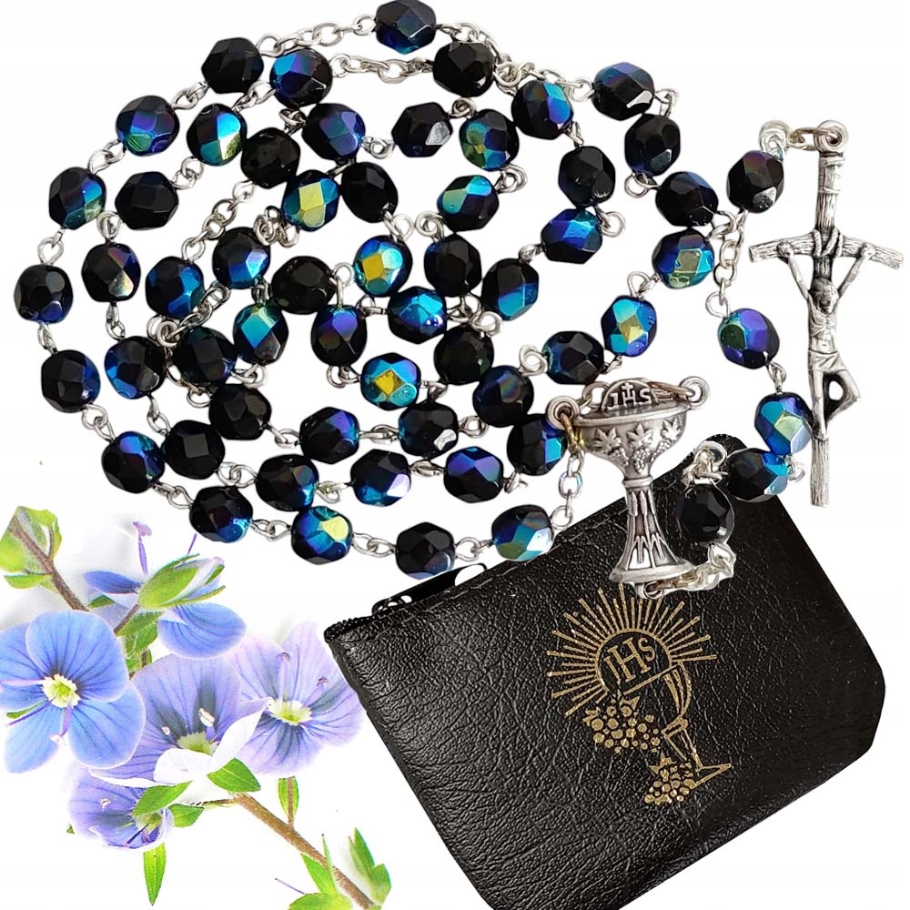Красивое причастие Розарий - Черный Кристалл - в случае для мальчика + молитвенная книга с замечательными фотографиями внутри -