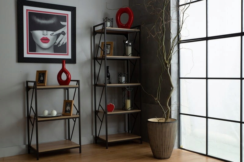 Книжный шкаф Tablo R5 — модная полка в стиле лофт, которая прекрасно впишется в современные интерьеры. Полка – практичное место для хранения книг, украшений и безделушек. Современные полки выглядят элегантно и легко, универсальность используемых цветов и дизайна вне времени и соответствует современным тенденциям. Полка имеет интересную декоративную металлическую конструкцию, окрашенную в темно-коричневый цвет. Полки цвета дуба из плиты МДФ, покрытые высококачественным шпоном. Книжный шкаф имеет 5 прочных полок, на которых мы можем свободно разместить все выбранные украшения и книги. Расстояние между полками 36 см, грузоподъемность всей полки 50 кг. Сочетание металла и дерева – самая модная тенденция этого года, среди современных композиций доминирует стиль лофт. Полка Tablo R5 – отличный элемент декора гостиной, спальни, студенческой комнаты или кабинета. Для создания интересного комплекта рекомендуем другую мебель в стиле лофт, представленную на нашем сайте