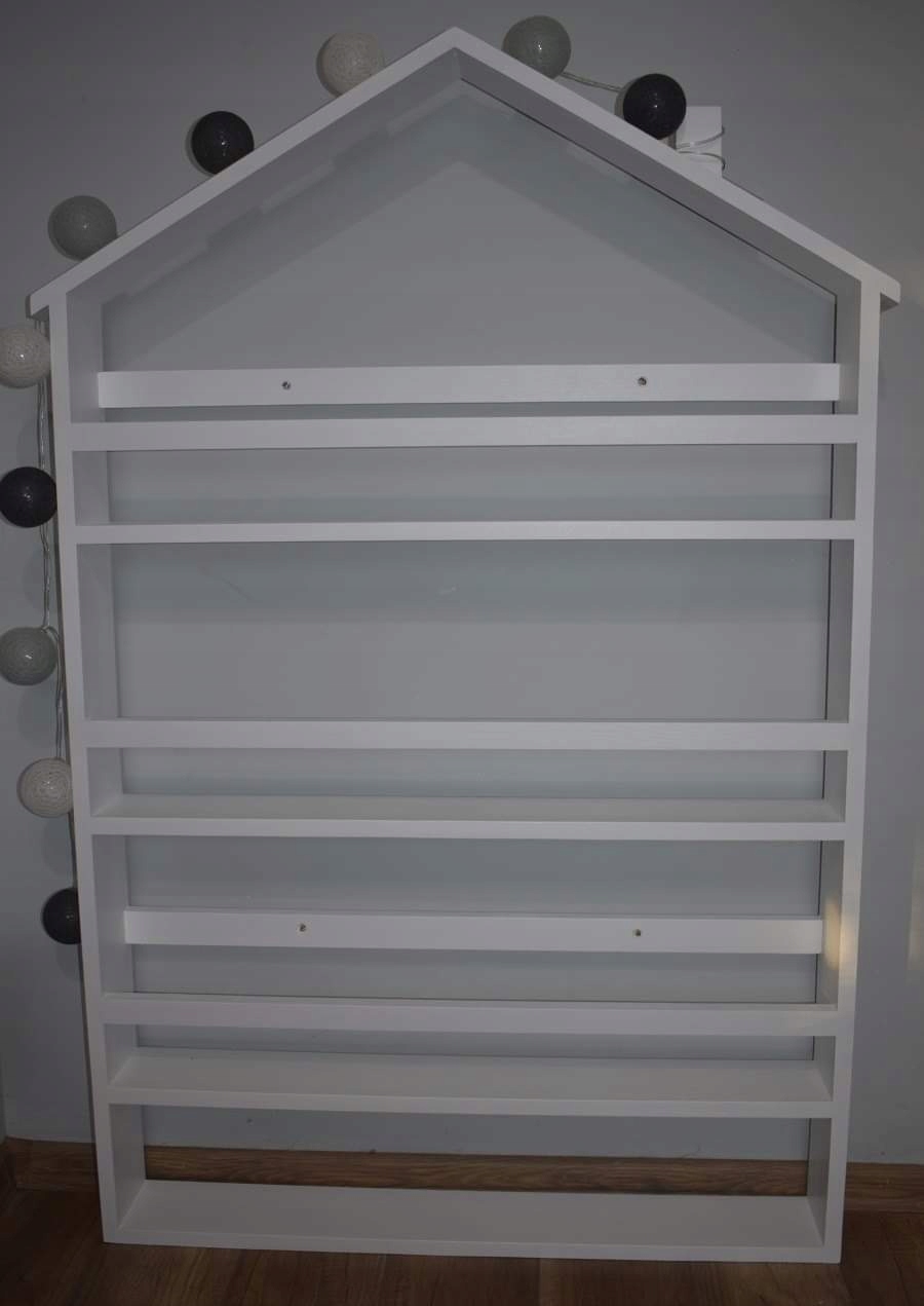 для продажи у меня есть висящая полка для книг в форме дома с дополнительной полкой для мелких предметов. Полка была сделана из твердой сосны и окрашена органической краской. Возможность изготовления задних пластин. Покрытие составляет 15 см