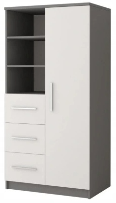 Книжкова шафа 80 см 3S1D KATE SYSTEM - БІЛИЙ / СІРИЙ
