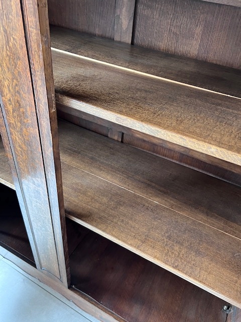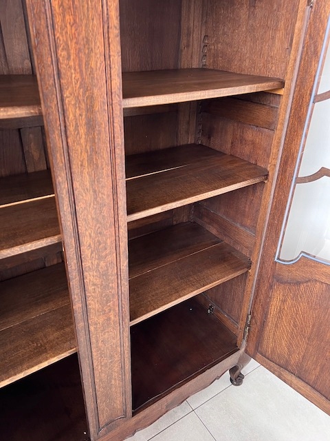 Дубовый книжный шкаф. Очень хорошенькая. Выполнено в стиле Людвика. Он находится в хорошем состоянии. Единственный его недостаток – две полки вдоль сухие. Разумеется, это не влияет на их функциональность. Других повреждений и дефектов нет. Есть три полки. Их высоту можно свободно регулировать. Замки функциональные и комплектуются двумя ключами. Книжный шкаф разобран и доставлен новому владельцу по частям. Готово к вставке.