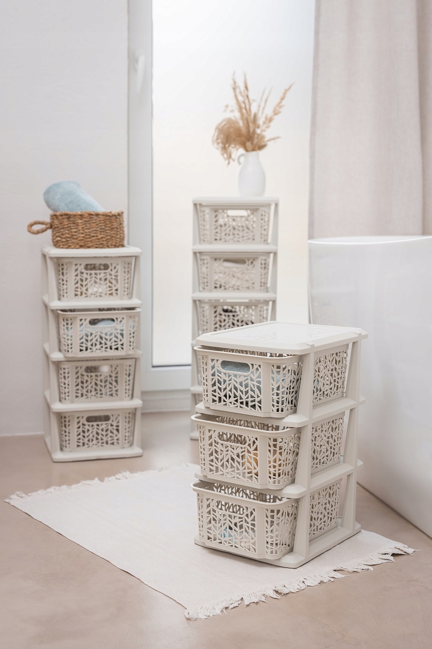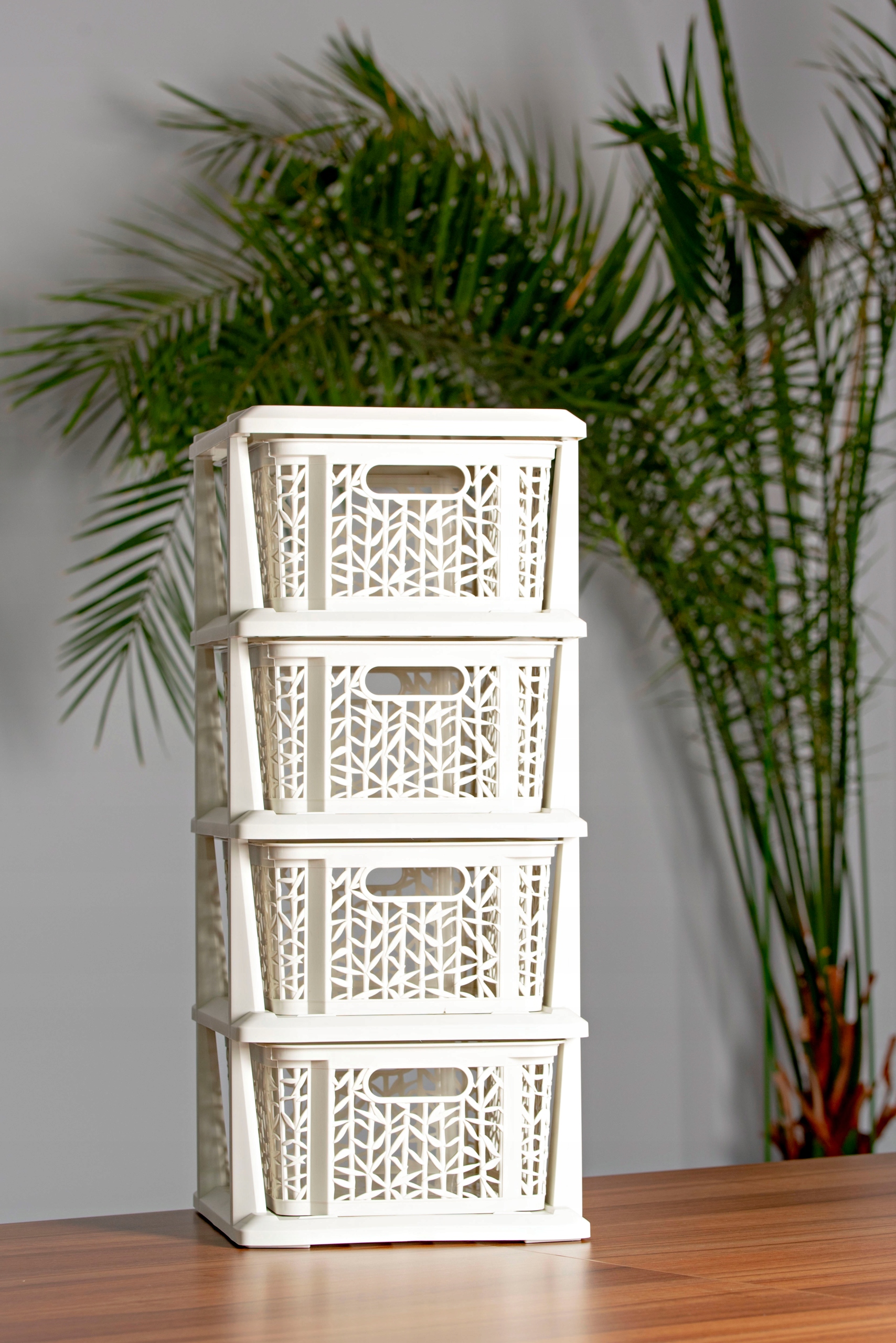 Изделие состоит из 4-х контейнеров, выполняющих функцию ящиков. Они выполнены из пластика, по виду напоминают ажурные корзинки. > b> Благодаря этому они выглядят очень эстетично.