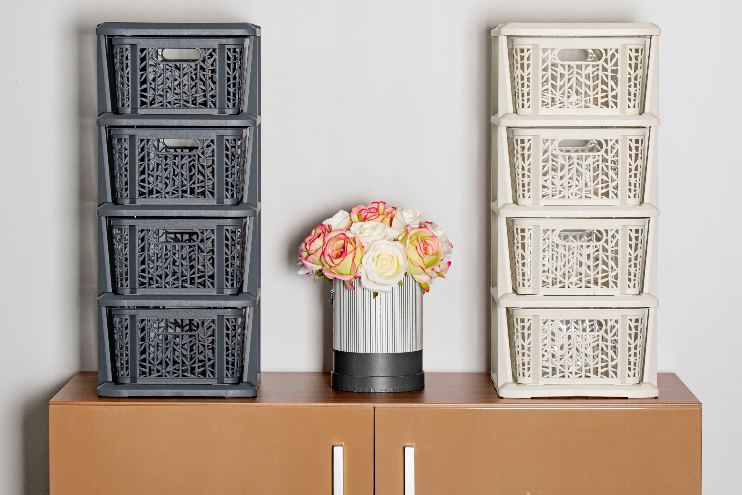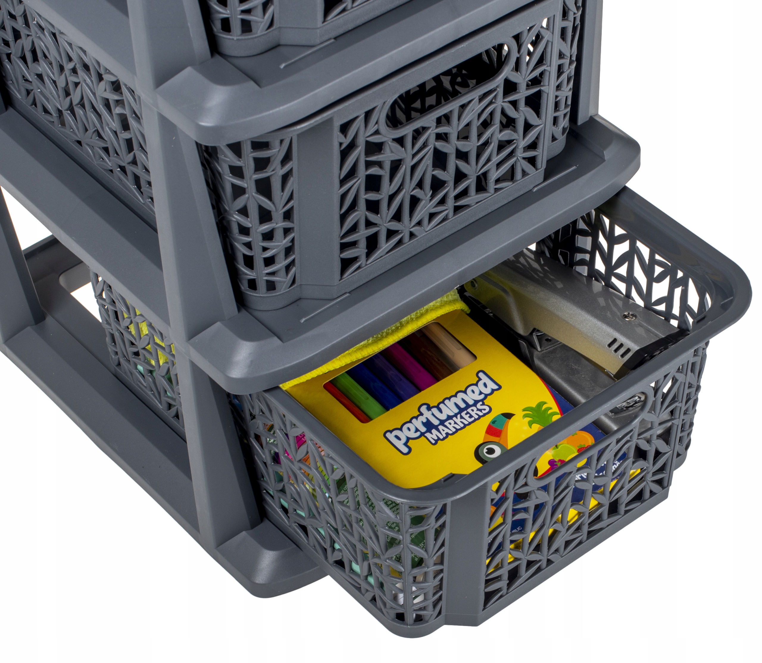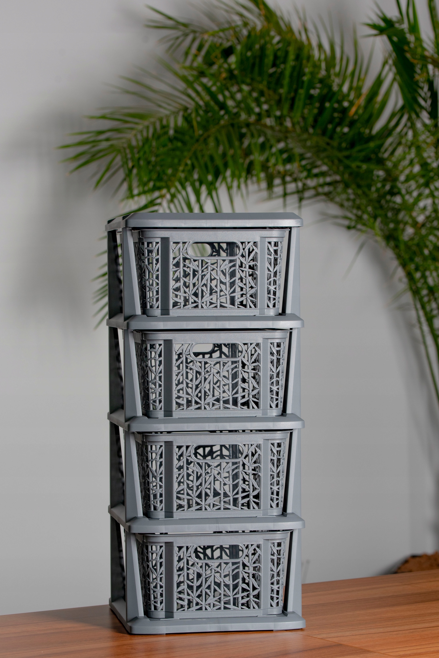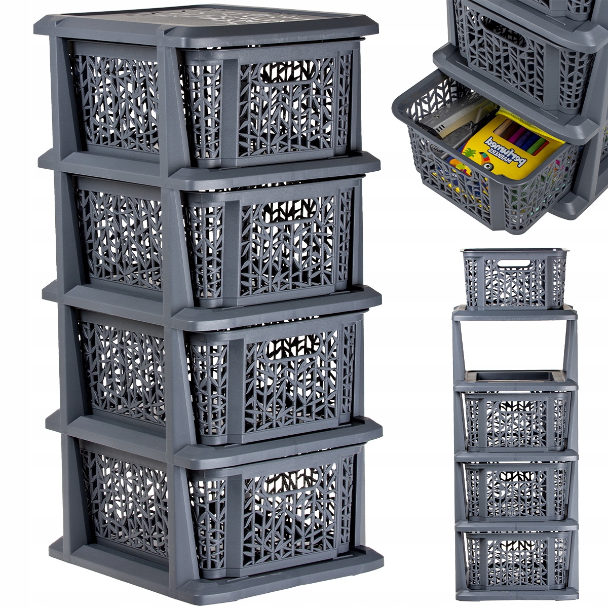 Изделие состоит из 4-х контейнеров, выполняющих функцию ящиков. Они выполнены из пластика, но внешне напоминают ажурные корзинки. > b> Благодаря этому они выглядят очень эстетично.
