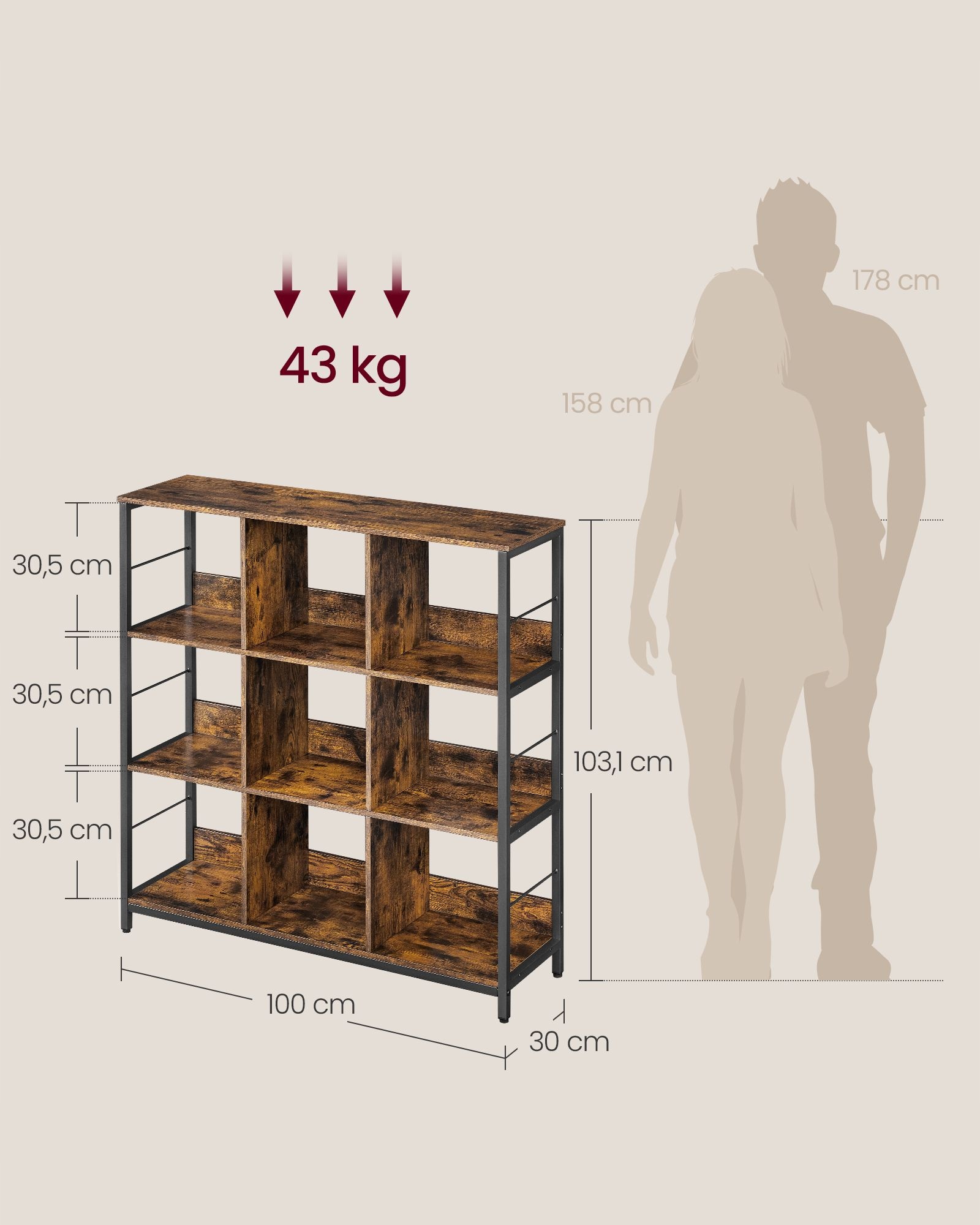 Сплошная полка с 3 уровнями и 9 отделениями обеспечивает достаточно места для хранения книг, украшений, растений, стаканов и бутылок в разных комнатах — от гостиной до офиса и кухни. Задняя панель из МДФ и стальные стержни укрепляют конструкцию и повышают стабильность использования. Регулируемые ножки позволяют разместить мебель даже на неровном полу, а боковые металлические перекладины защищают от случайного скольжения предметов. Возможность крепления крючков увеличивает функциональность – наушники, шапки, шарфы и другие мелочи всегда будут под рукой. Открытая конструкция полок облегчает доступ и обеспечивает эстетичный вид, а универсальный внешний вид позволяет подобрать мебель к различным стилям интерьера.