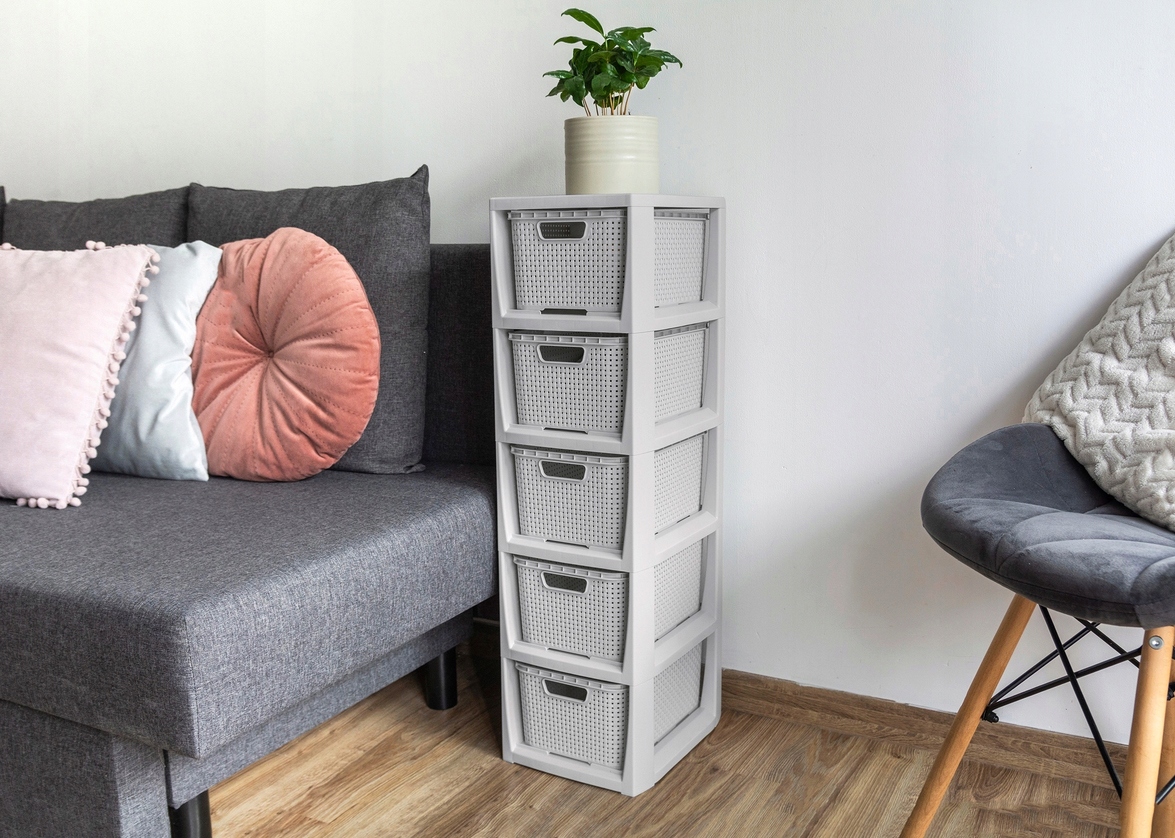 >Полка из ротанга, состоящая из пяти частей, — очень хорошее решение для хранения вещей в небольших помещениях. Сделанный очень эстетично, из высококачественного и безопасного материала (без фталатов и BPA), он идеально подходит для таких помещений, как ванная комната, гардеробная, детская комната или домашний офис. Польский продукт.