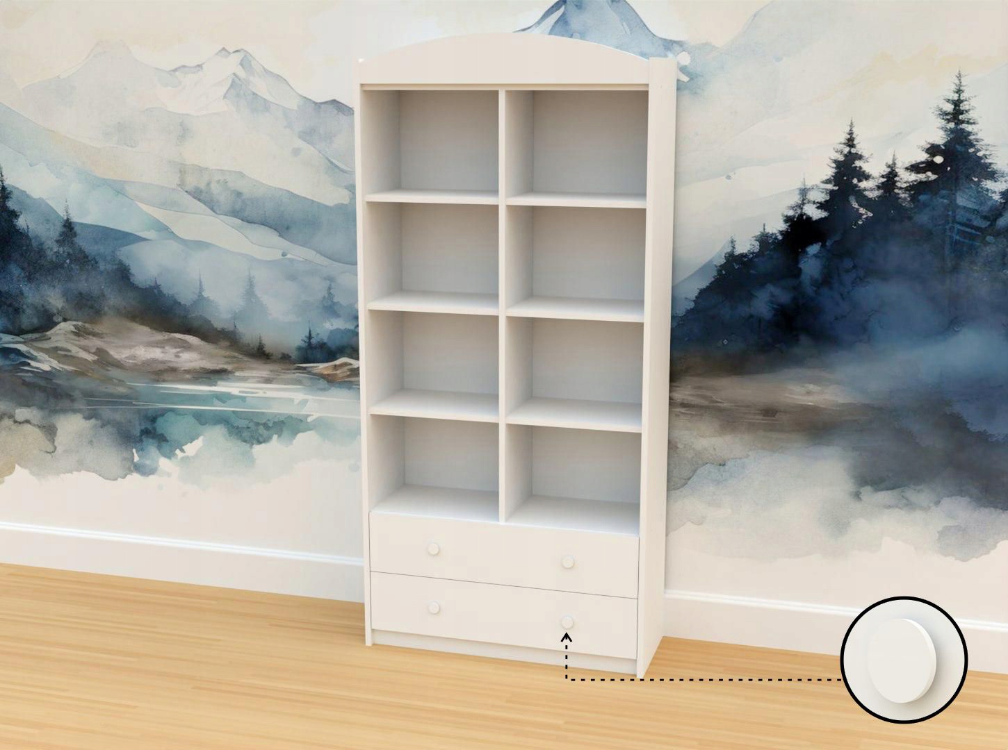 HAPPY RW10 ВЫСОКИЙ КНИЖНЫЙ ШКАФ - БЕЛЫЙ - ДЕТСКАЯ МЕБЕЛЬ - 3 РУЧКИ НА ВЫБОР