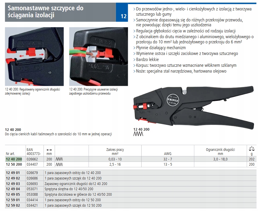 KNIPEX 12 40 200 Знімач кабелю 0,03-10мм