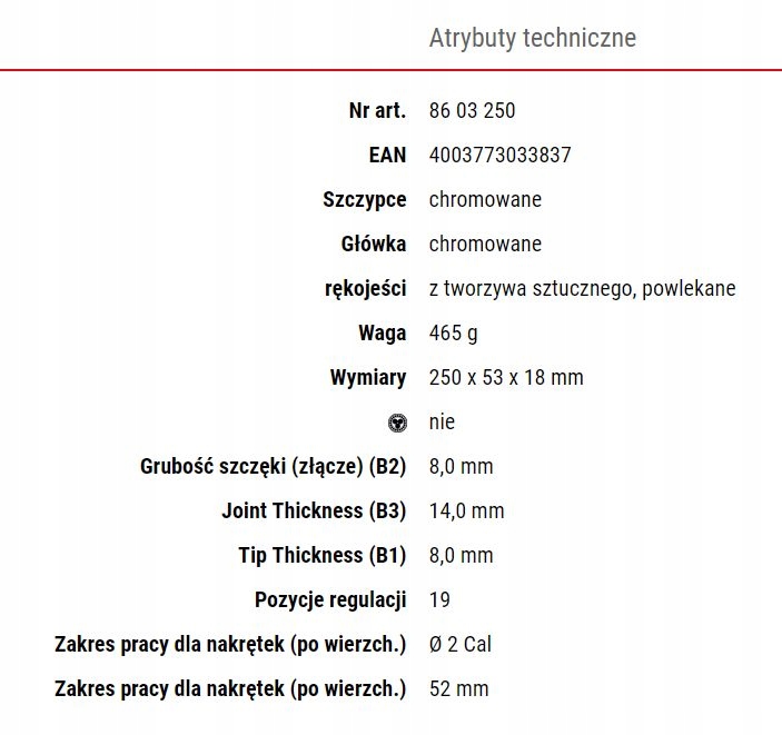 Просматривая «KNIPEX 86 03 250 szczypce klucz nastawny 2w1 250 mm», вы можете быть уверены, что данный товар из каталога «[rubrica_name]» будет доставлен из Польши и проверен на целостность. В цене товара, указанной на сайте, учтена доставка из Польши. Внимание!!! Товары для Евросоюза, согласно законодательству стран Евросоюза, могут отличаться упаковкой или наполнением.