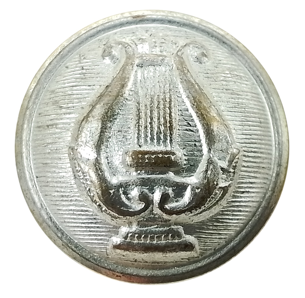 Кнопка, компетентная для членов музыкальных ассоциаций, оркестров и т. Д., Согласно диаметру, посвященному прикреплению к плечевой площадке, двум слоям, стальному обратному обращению, подписанному с диаметром и логотипом производителя, полностью серебряным. Lüdenscheid