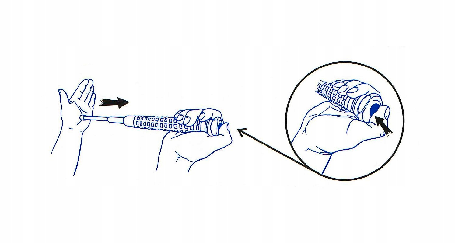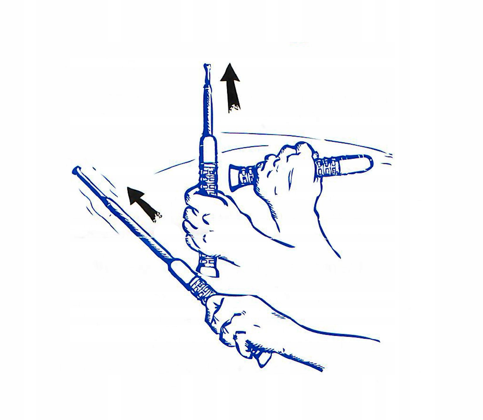 Эргономичная ручка - черного цветацвет шероховатой поверхности ограничивает возможность выдергивания дубинки из руки. Изготовлен из антиаллергенной, нескользящей синтетической резины, хорошо лежит в руке. Благодаря чрезвычайно прочному сочетанию рифленой накладки и телескопической дубинки, она чрезвычайно прочна и удобна в захвате.
