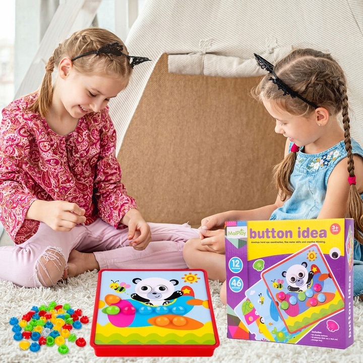 Спасибо, что дети имеют возможность постоянно обнаруживать новые композиции и создавать мозаику из 46 больших красочных кнопок. Разнообразие картинок означает, что развлечение никогда не скучно, и дети могут наслаждаться созданием новых дизайнов, что поддерживает их художественное развитие и ручные навыки.
