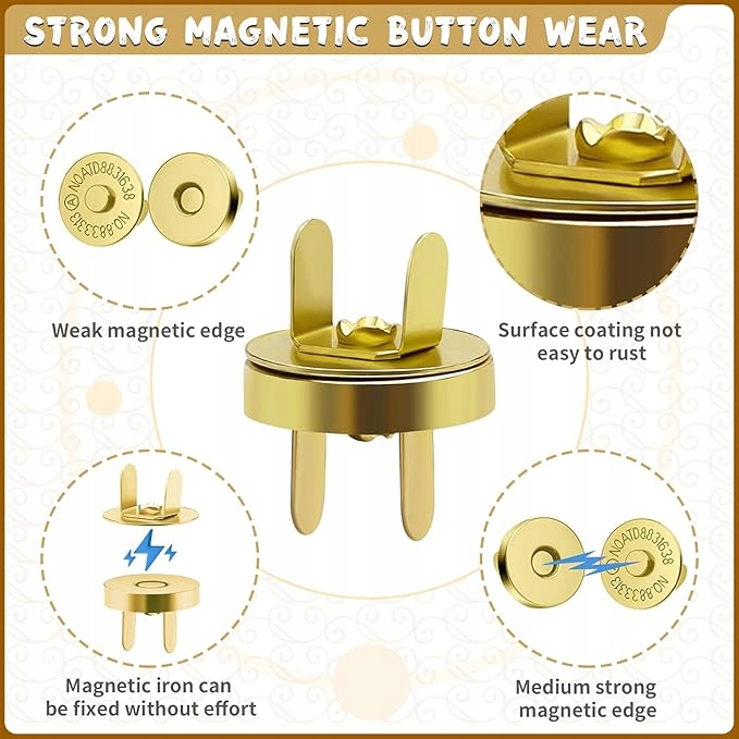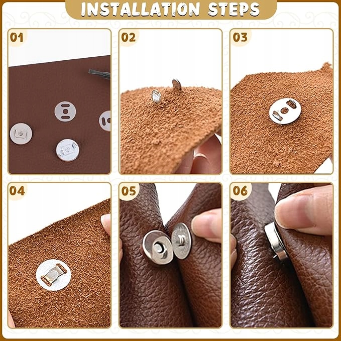 Магнитные кнопки очень хорошо для шитья и DIY. Они подходят для мешков, кожаных мешков, мешков, сцеплений, рюкзаков, кожаных курток, портфелей, игрушек, очков и т. Д. Просто положите защелку в материал и сложите. Это не требует использования иглы или нити.