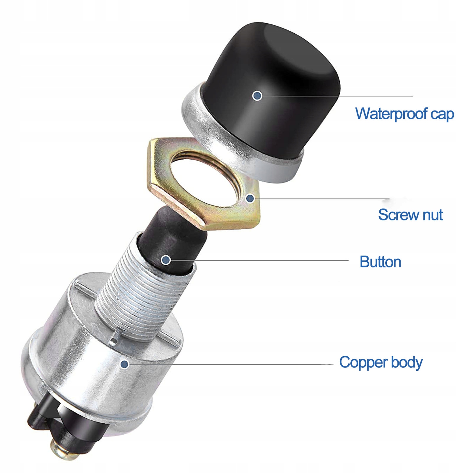 1. Водонепроницаемая крышка: кнопочный переключатель без фиксации имеет черный неопреновый колпачок для дополнительной защиты от грязи и влаги. 2. Широкое применение: запуск кнопкой применяется к большинству транспортных средств 12 В/24 В с током 20 А, универсальный для грузовиков и лодок RV ATV. 3. Стандартный переключатель звукового сигнала: когда кнопка отпущена, она обычно разомкнута (выключена), как показано в скобках вокруг положения ВКЛ. Это стандартный переключатель типа звуковой сигнал/зажигание. 4. Хорошая производительность: благодаря передовому производству этот переключатель зажигания имеет высокую надежность и стабильную работу. 5. Простая установка: простота установки, нет необходимости резать или сверлить, подключи и работай, прямая замена старого, который удобен в использовании.
