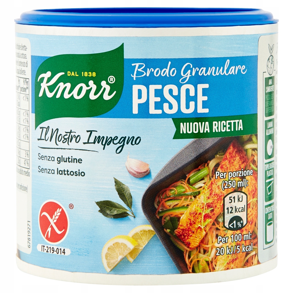 Knorr Brodo Granulare Pesce — итальянская приправа для рыбы. Прекрасно усиливает вкус и придает аромат рыбе как при запекании, так и при жарке и варке.