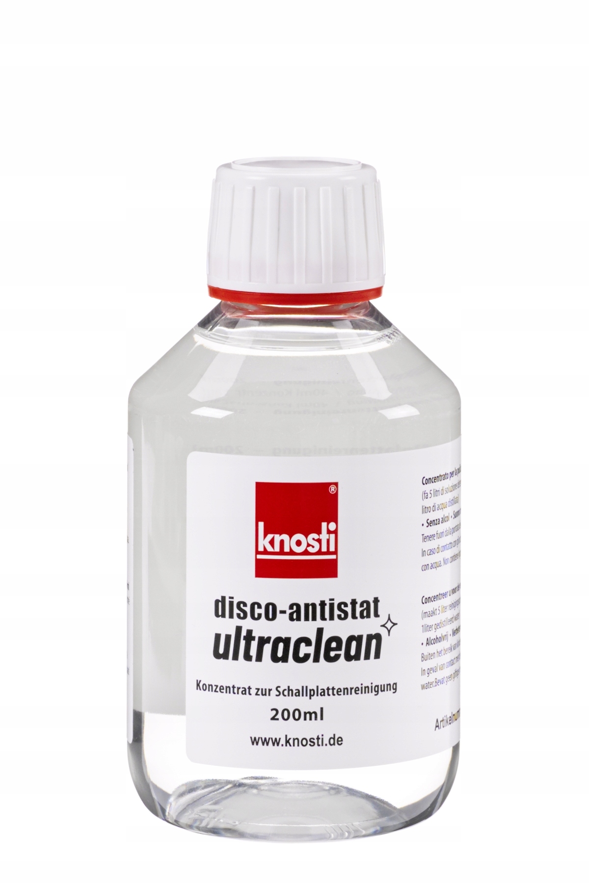 - Диско-Антистат Ультраклин б>Оказывает глубокое воздействие на канавки, мягко и тщательно очищает диски от стойких загрязнений. Для получения оптимального очищающего эффекта мы рекомендуем использовать специальную воду высокой чистоты KNOSTI Disco-Antistat BiDest.