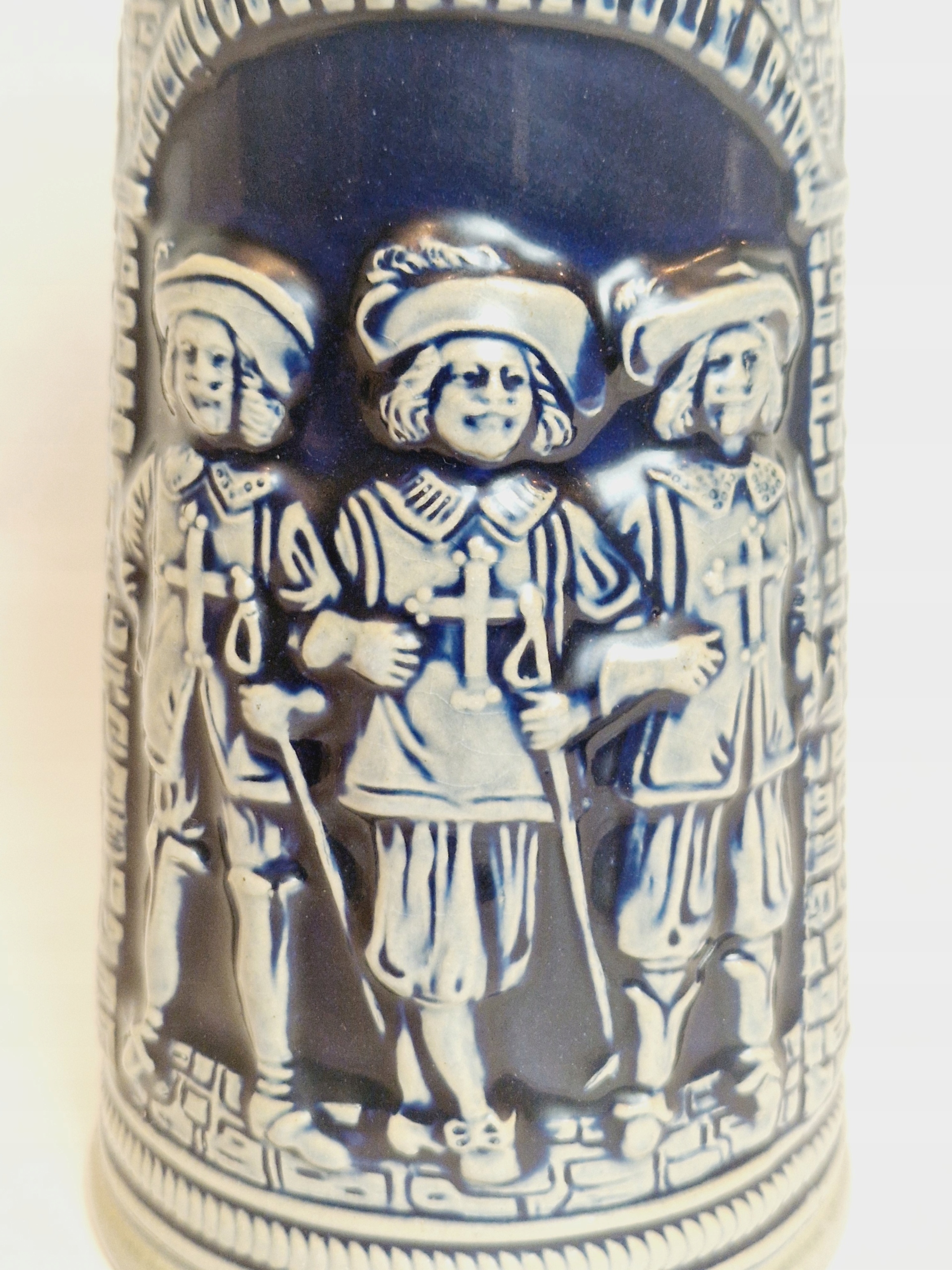 Кружка-пальто, украшенная фигурками мушкетеров (3D) и немецкой надписью: