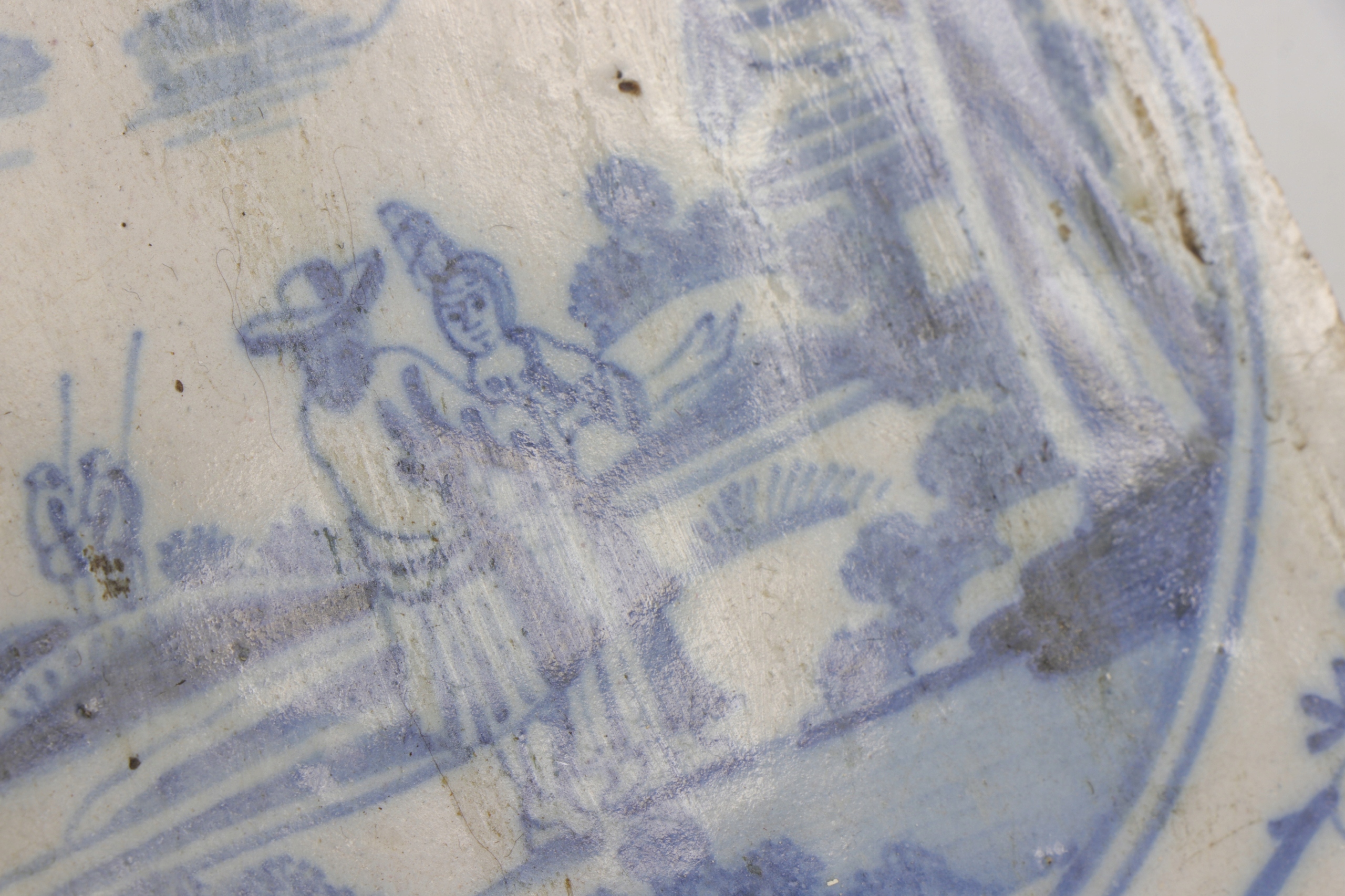 Делфтская кобальтовая стропильная плитка 17-18 века, антикварная