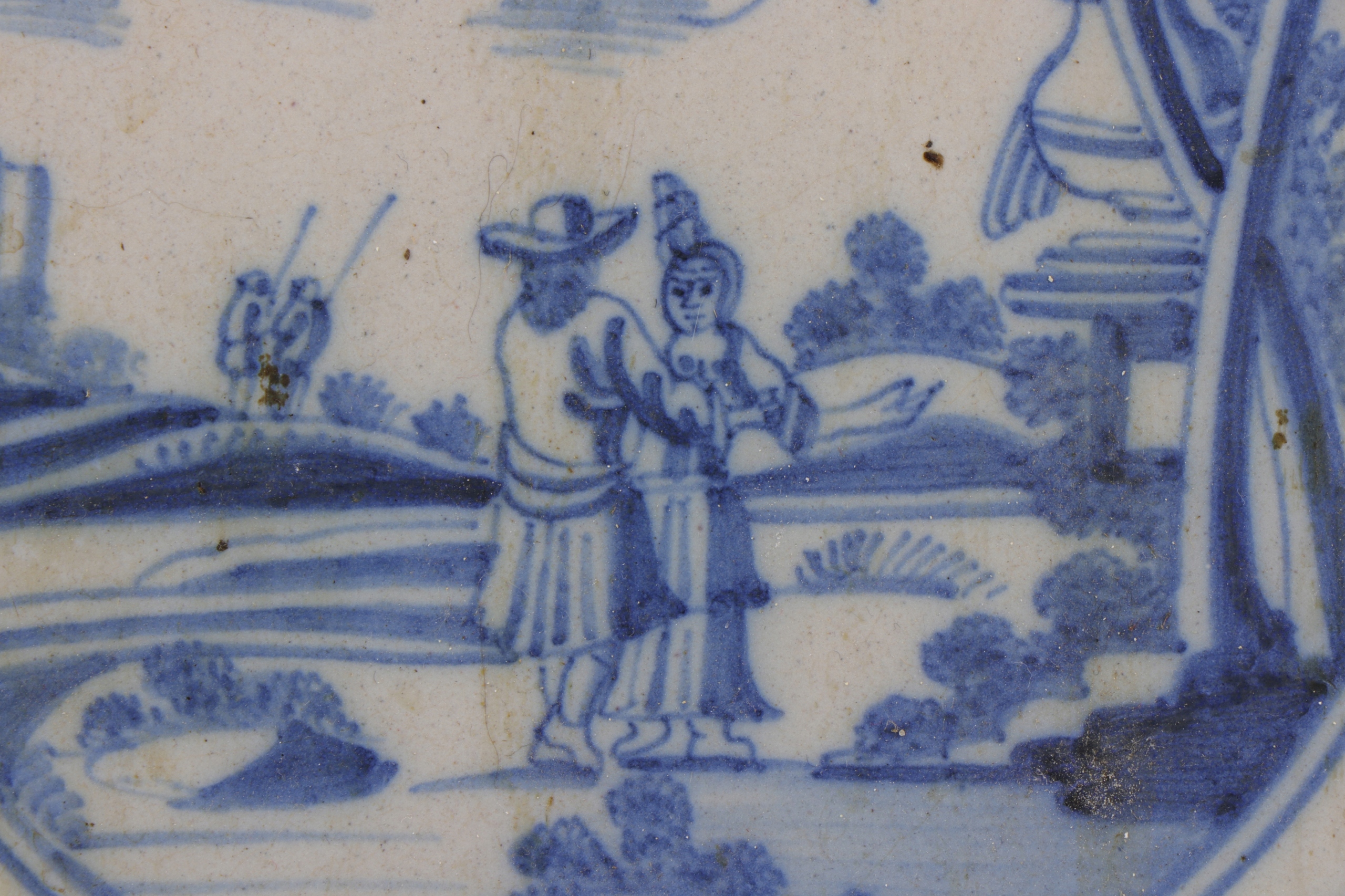 Кобальтовая плитка Delft, расписанная вручную. На плитке изображен орнамент жанровой сцены. Предлагаю другие похожие плитки на другом аукционе.