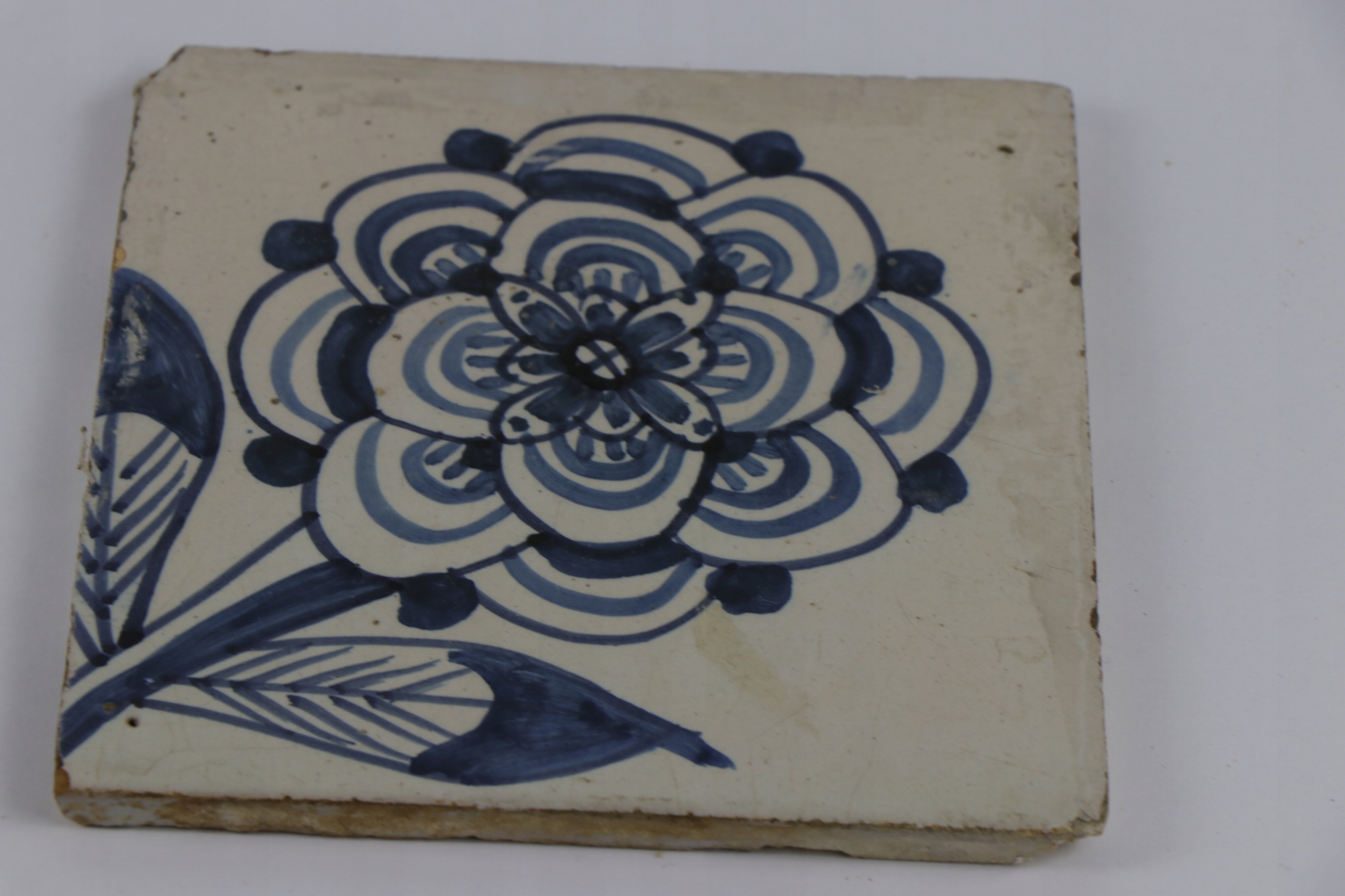 Марганцовистая плитка Делфт, расписанная вручную. На плитке изображен цветочный орнамент. Предлагаю другие похожие плитки на другом аукционе.