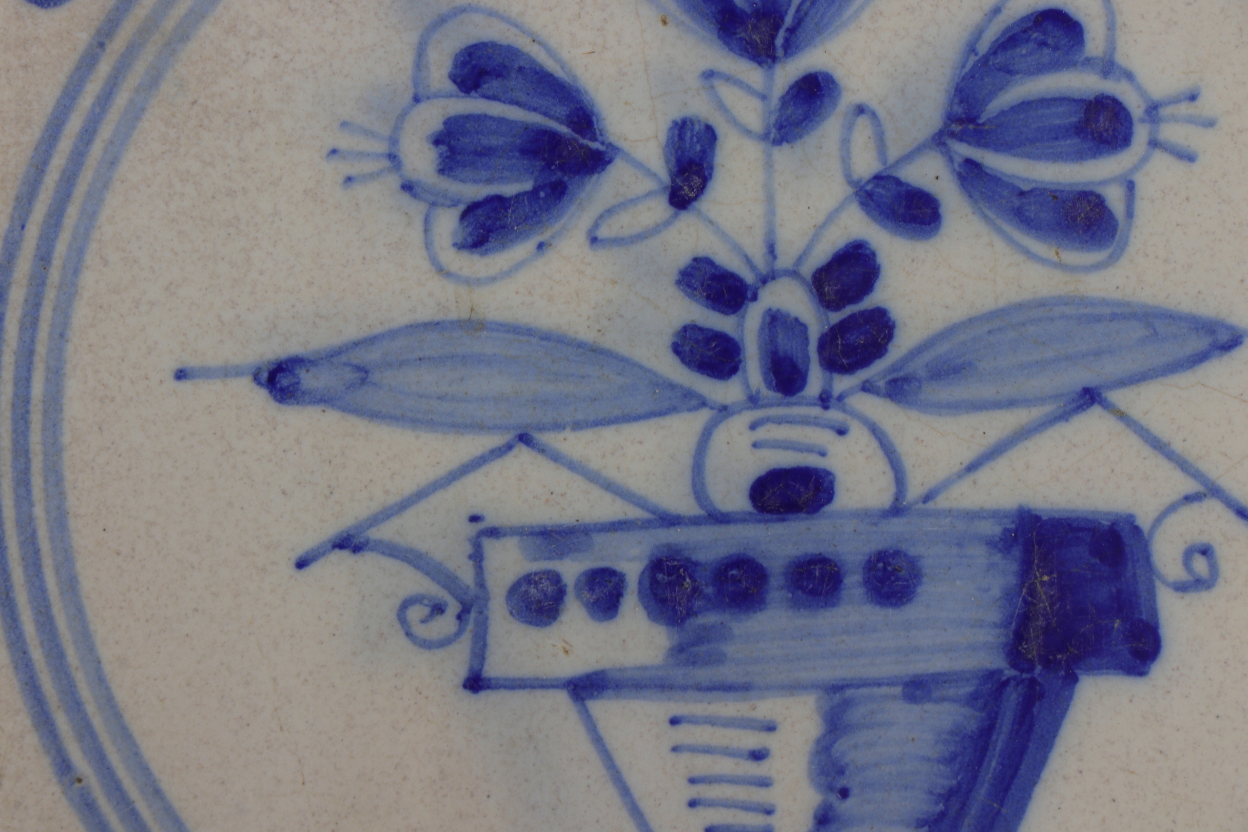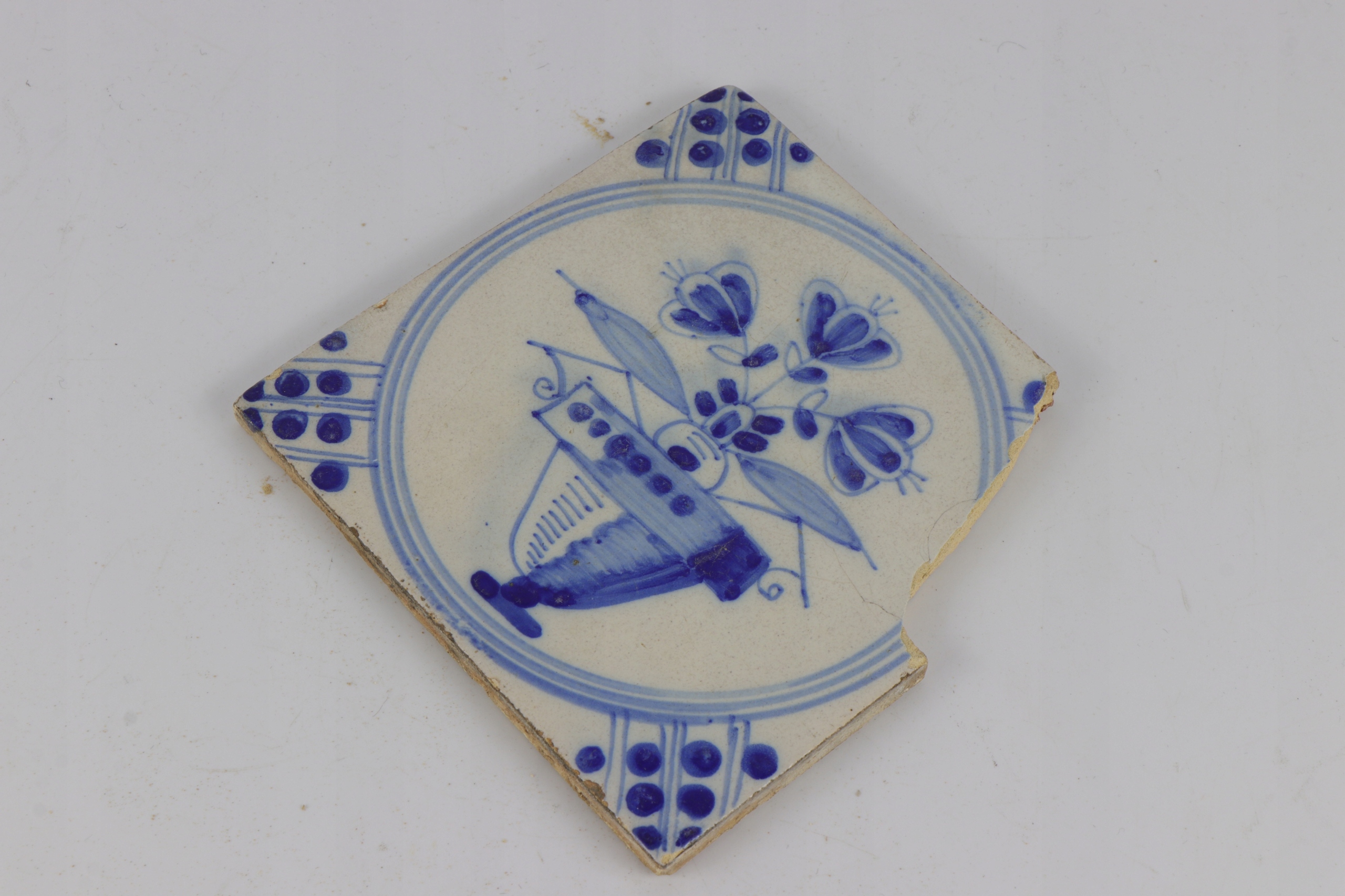Кобальтовая плитка Delft, расписанная вручную. На плитке изображен нарисованный вручную цветок в вазе. Предлагаю и другие подобные плитки на других аукционах.