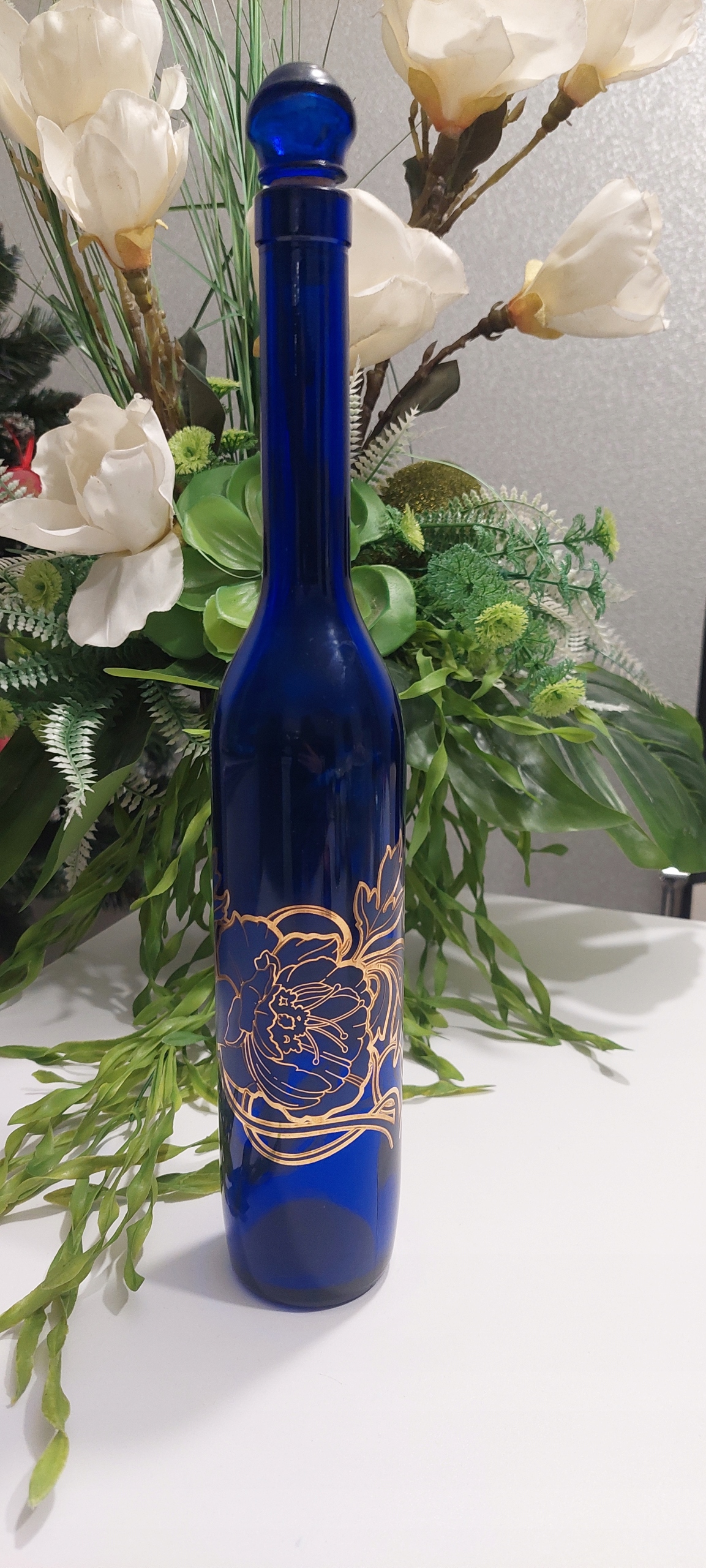 Кобальтово-синий флакон в очень хорошем состоянии, размеры: высота 37 см, диаметр основания 5,5 см.