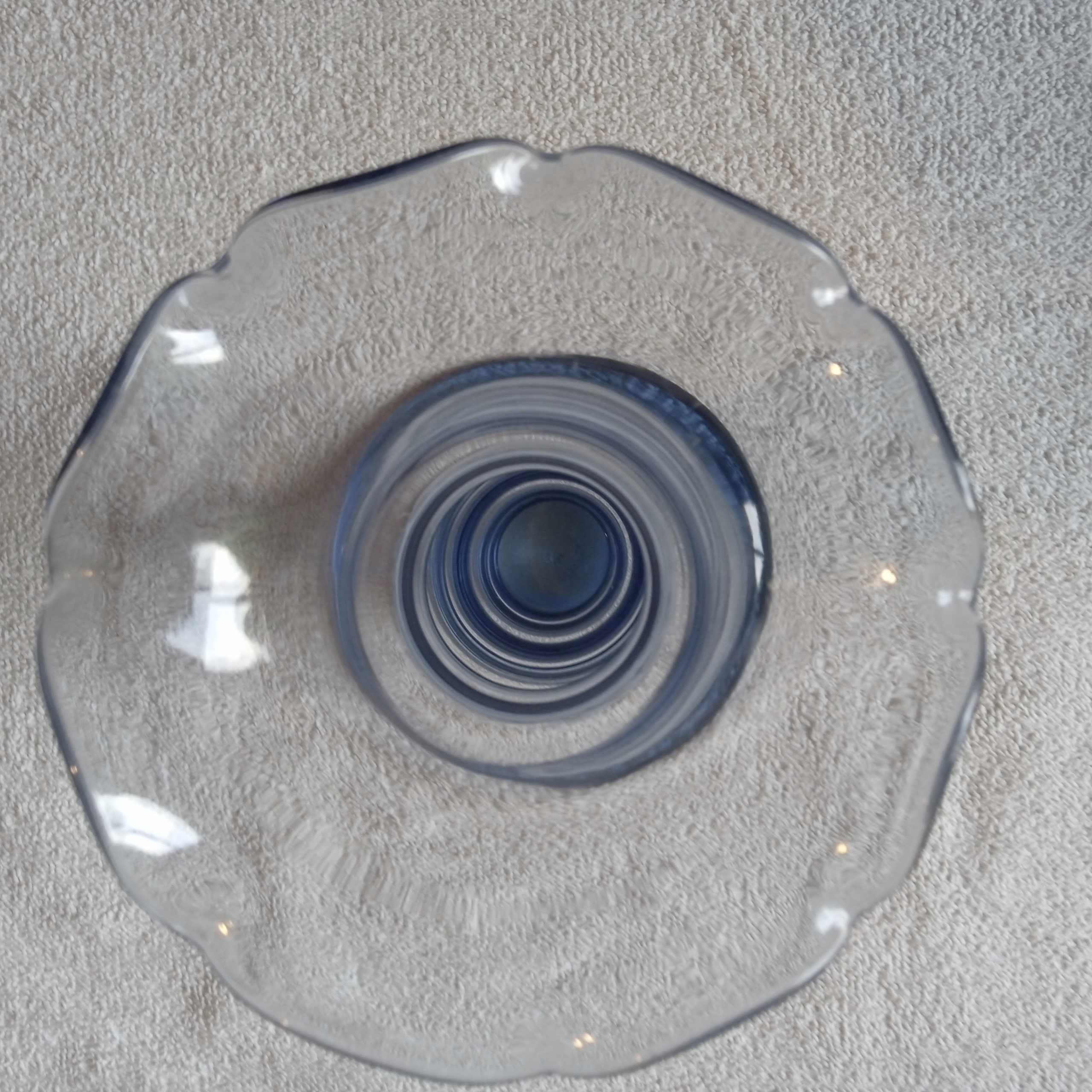 Продаю кобальтово-синюю вазу в стиле ар-деко с рюшой, изготовленную примерно в середине 20 века из выдувного стекла вручную. Ваза производства одного из бельгийских стекольных заводов, массовое крашенное стекло. Высота 21,4 см. Диаметр (сверху) 10,5/4,2/5,5/4,5/8 см. Дно массивное, толщиной около 2 см. Состояние хорошее, без видимых повреждений.