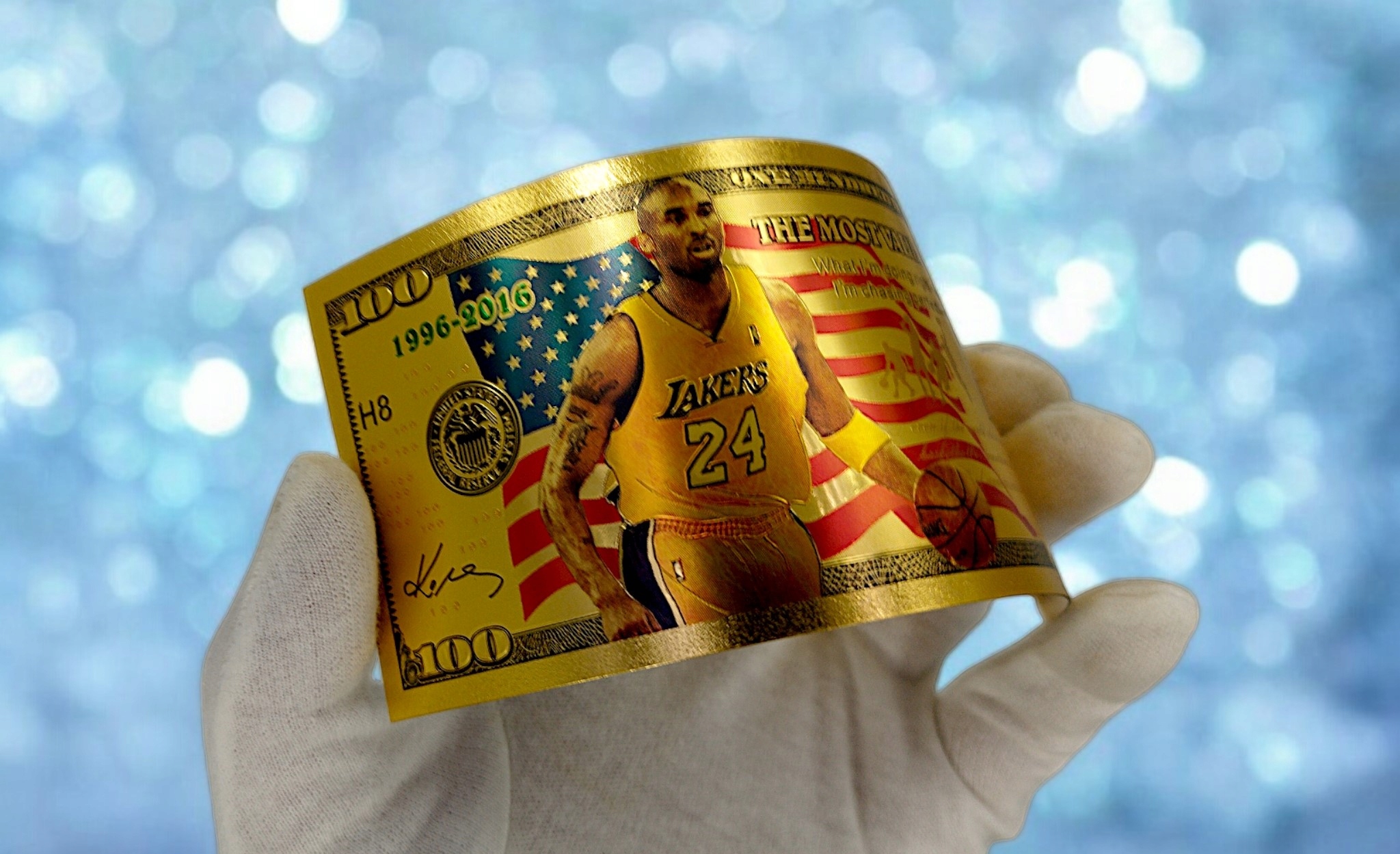 Красивый набор позолоченных банкнот с изображением Коби Брайанта.