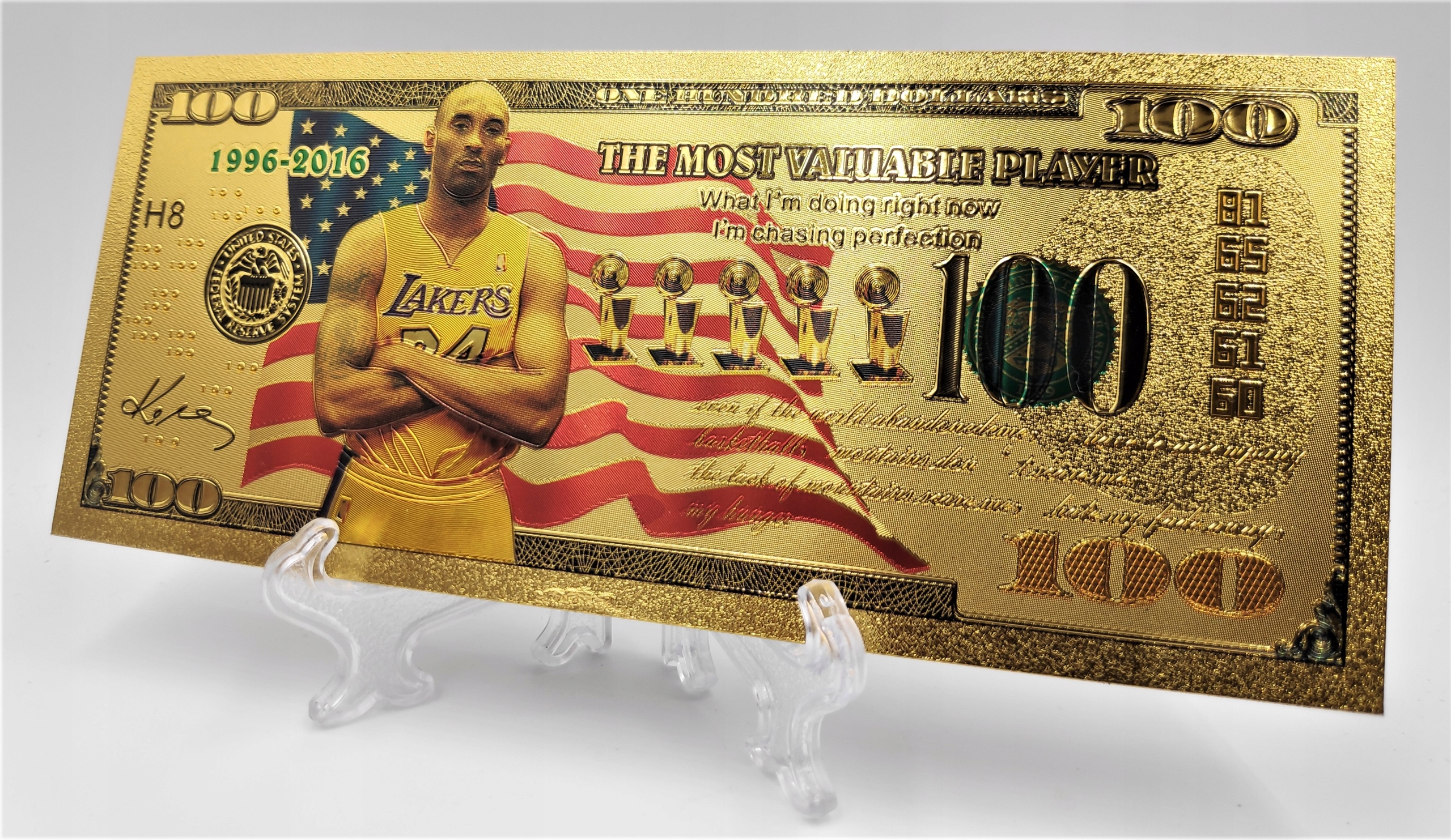 Предлагаю на продажу красивую позолоченную коллекционную банкноту с изображением Коби Брайанта.