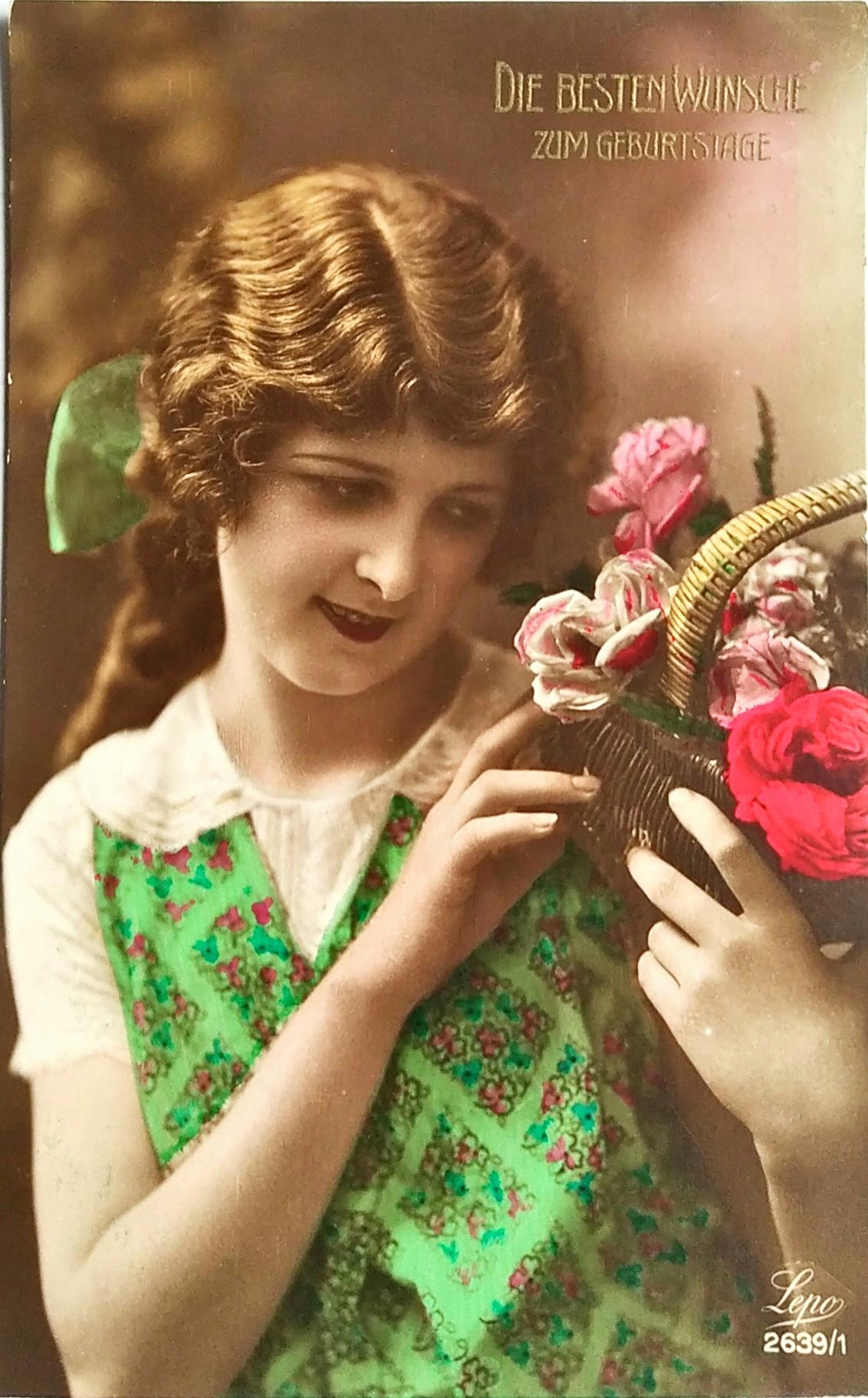 ЖЕНЩИНА С ЦВЕТАМИ - СТАРАЯ ОТКРЫТКА