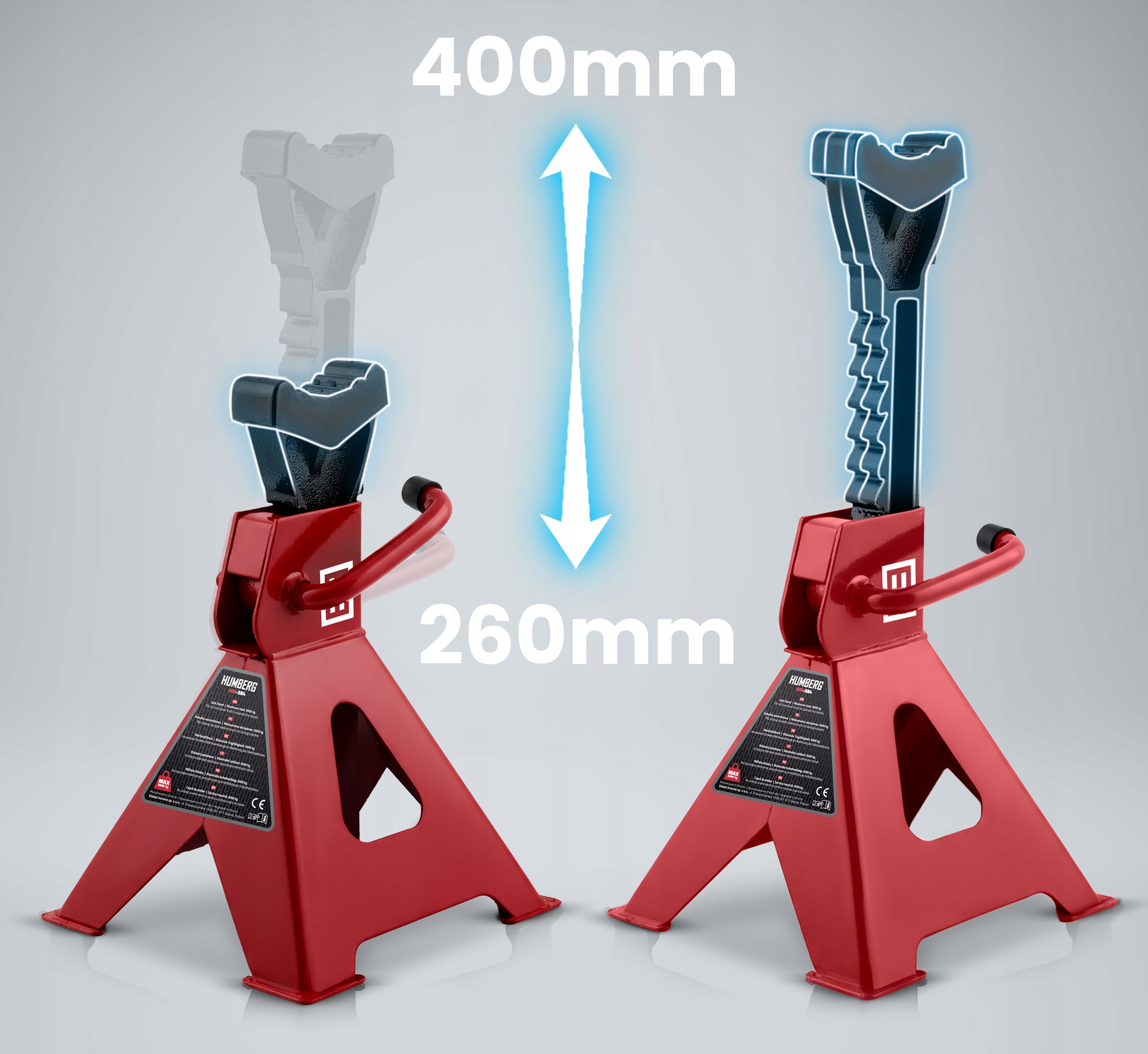 Качалки оснащены удобным храповым механизмом, позволяющим быстро и безопасно регулировать высоту в диапазоне от 260 мм до 400 мм. Благодаря этому вы легко сможете установить транспортное средство на нужном уровне – не суетясь и не теряя времени.