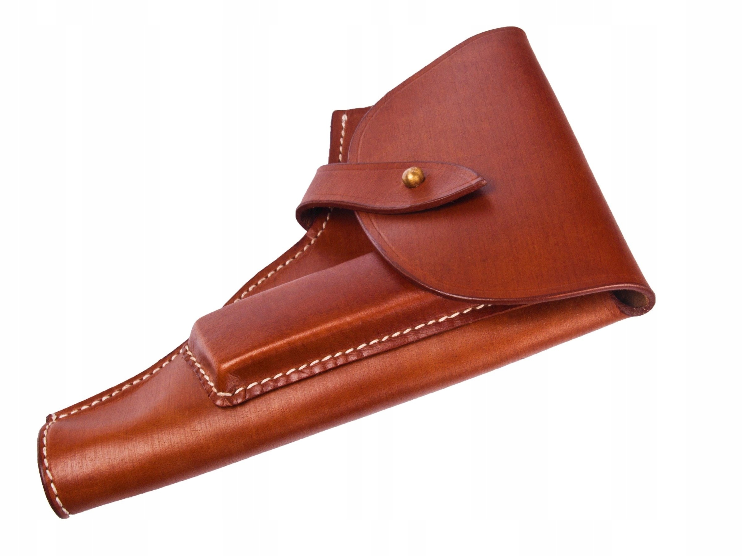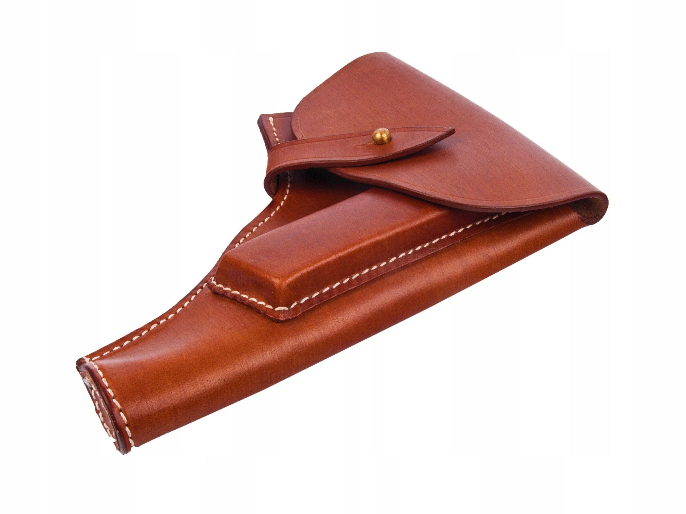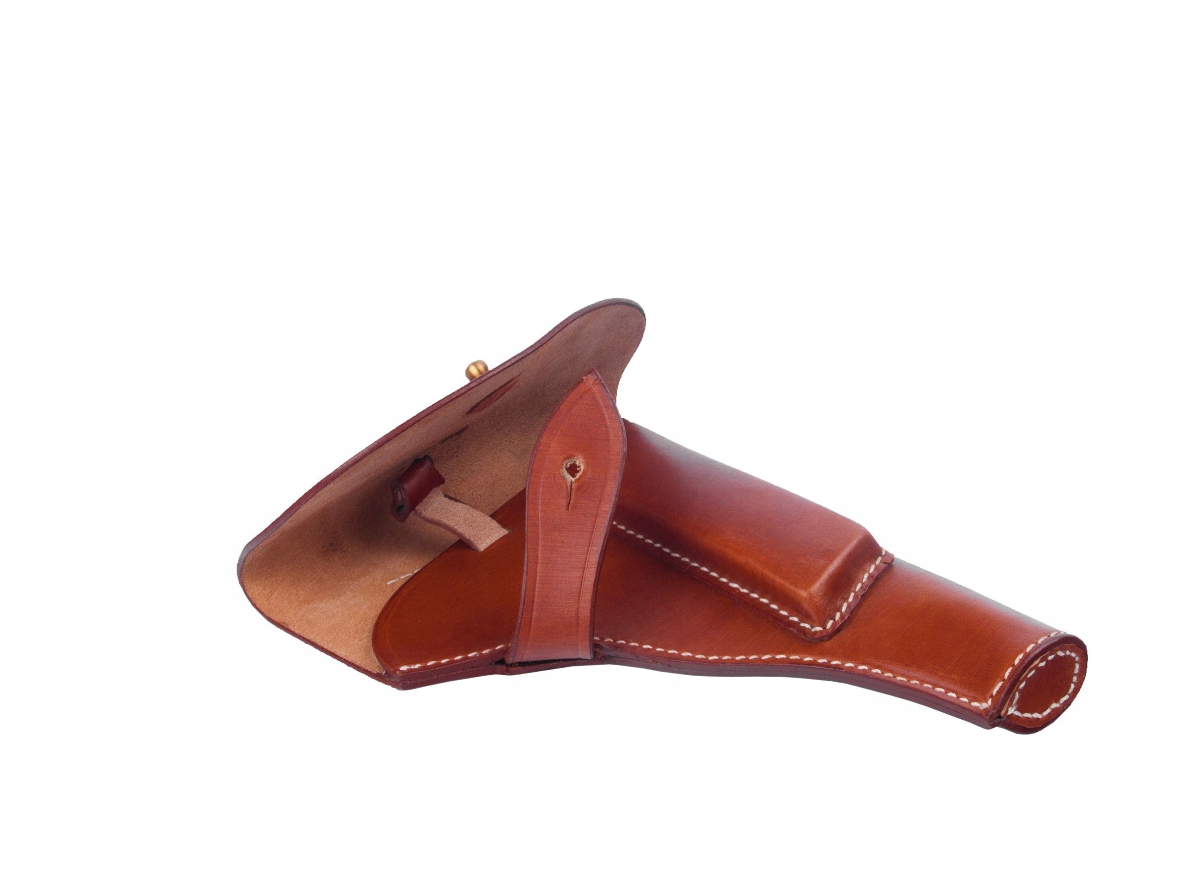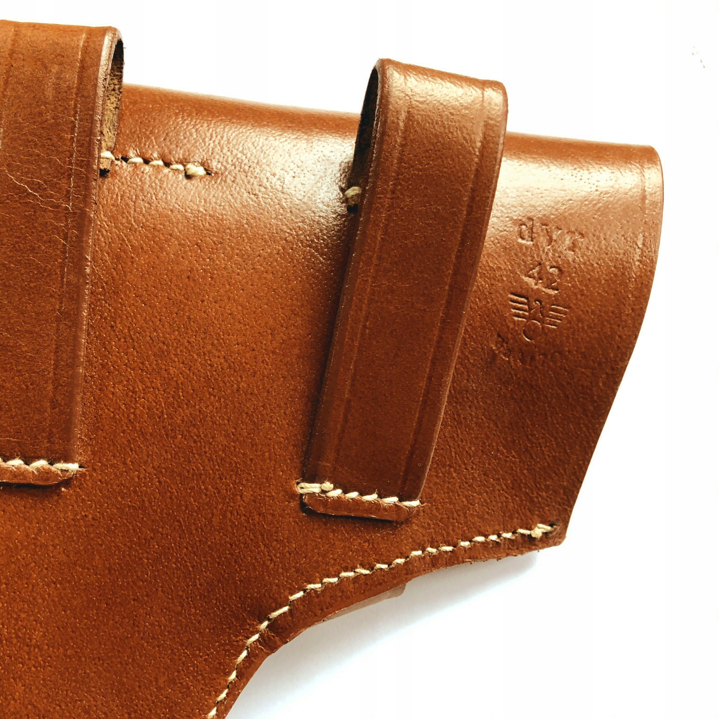Идеальная копия немецкой кобуры для пистолета Р35(п), то есть ВИС, произведенной в Радоме во время оккупации после захвата немцами оружейного завода. Кобура изготовлена из натуральной кожи, закрывается на латунную кнопку.