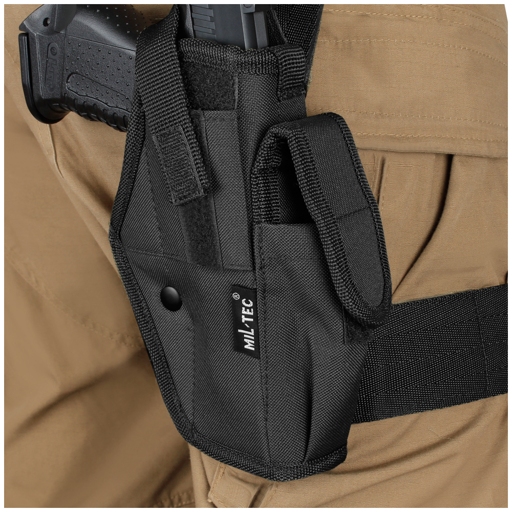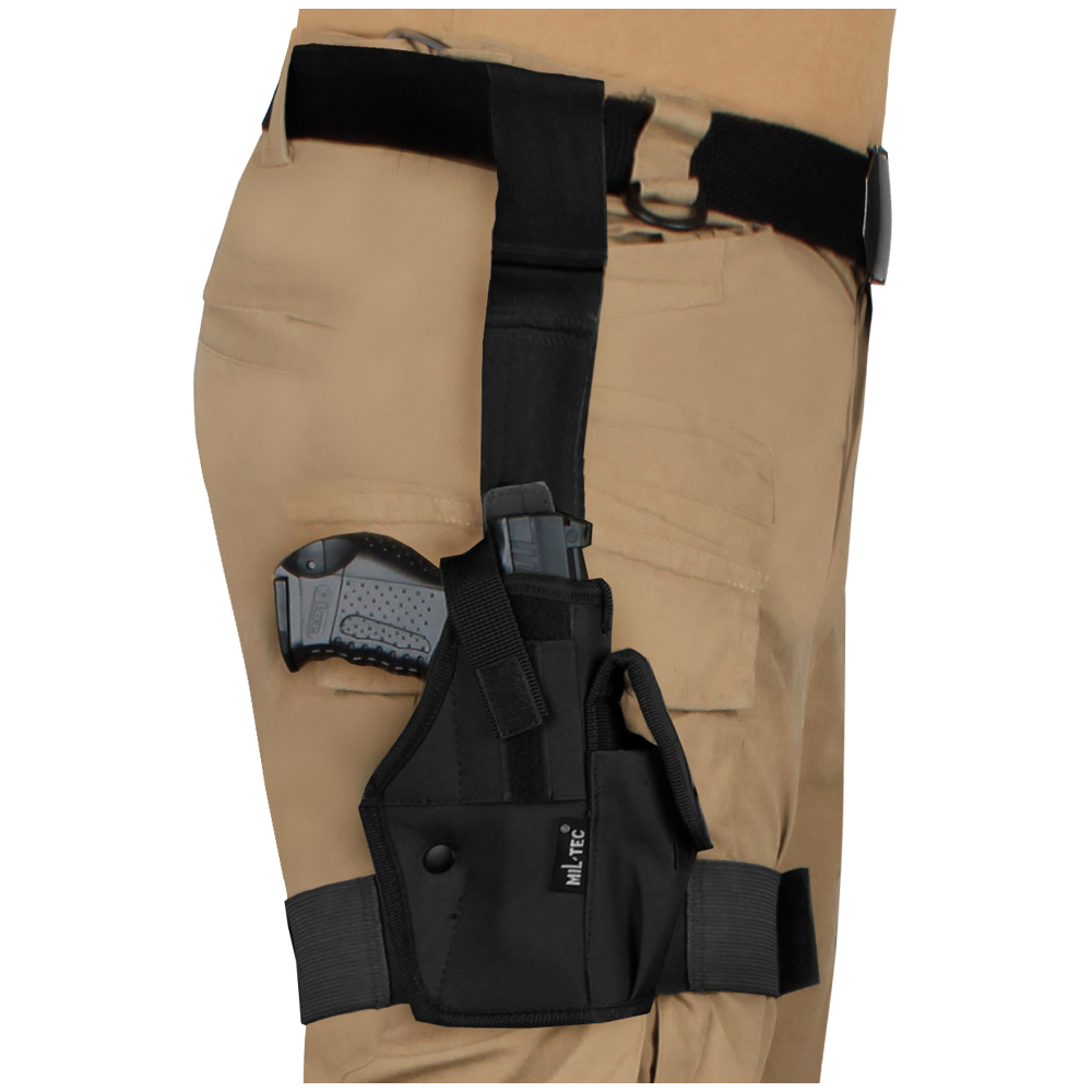 Современная и универсальная набедренная кобура с возможностью крепления к ремню немецкой компании Mil-Tec®, предназначенная для большинства типов современного огнестрельного оружия (Glock, Walther, Wist, H&K, SIG SAUER).