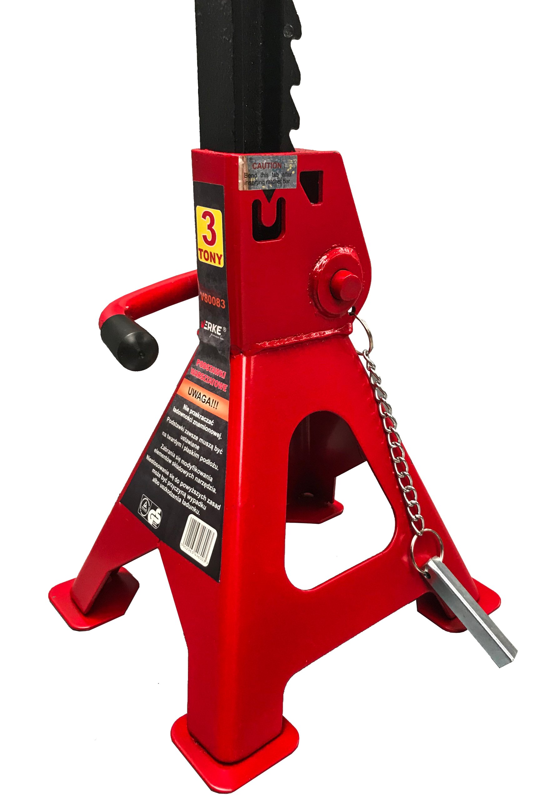 Специальный, дополнительный замок в виде штифта (штифта) защищает храповой механизм от непреднамеренного опускания опорной стойки. Штифт оснащен цепочкой, прикрепленной к корпусу эстакады, что предохраняет его от потери.