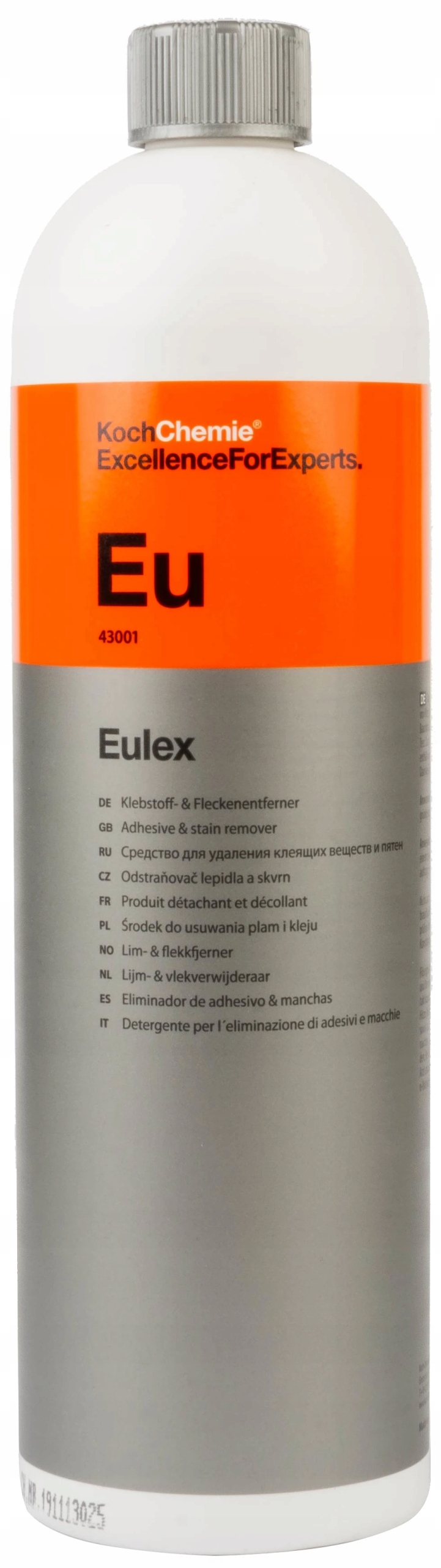KOCH CHEMIE EULEX - это профессиональное средство предназначено для удаления различного рода остатков наклеек, клея, резины, смолы, остатков краски, чернильных пятен, масел и многих других.