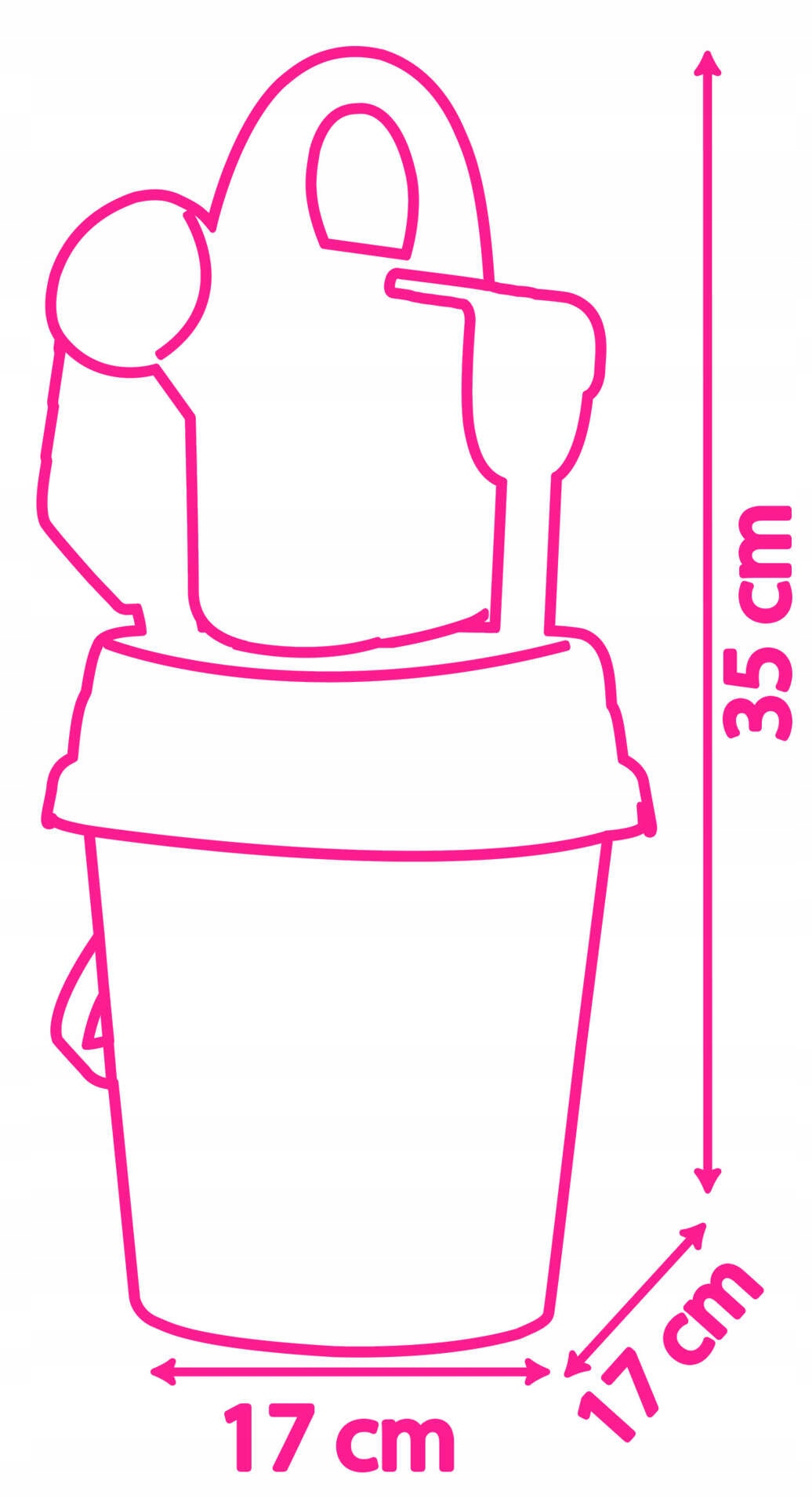 Помимо ведра в набор входит розовая лейка. банка, фиолетовая лопатка и граблии светло-розовая формочка в форме кошачьей головыа.