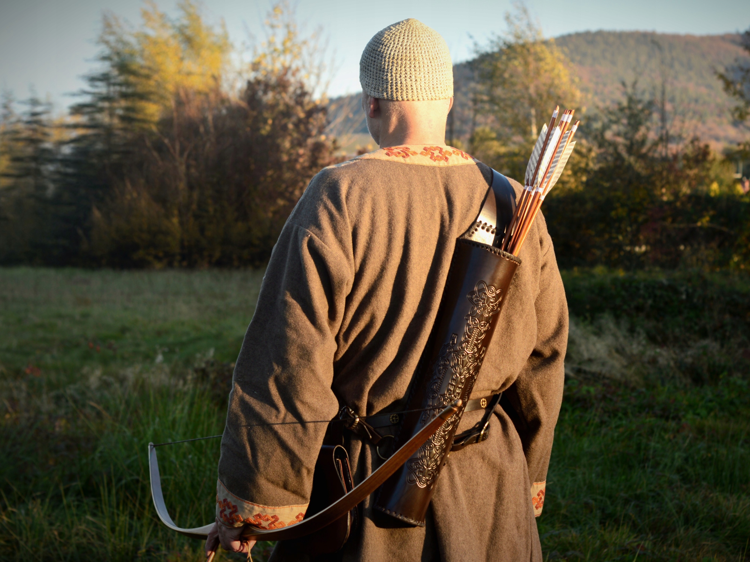 Kołczan na plecy celtycki, Gotlandia, pleciony rzemieniem, naturalna skóra