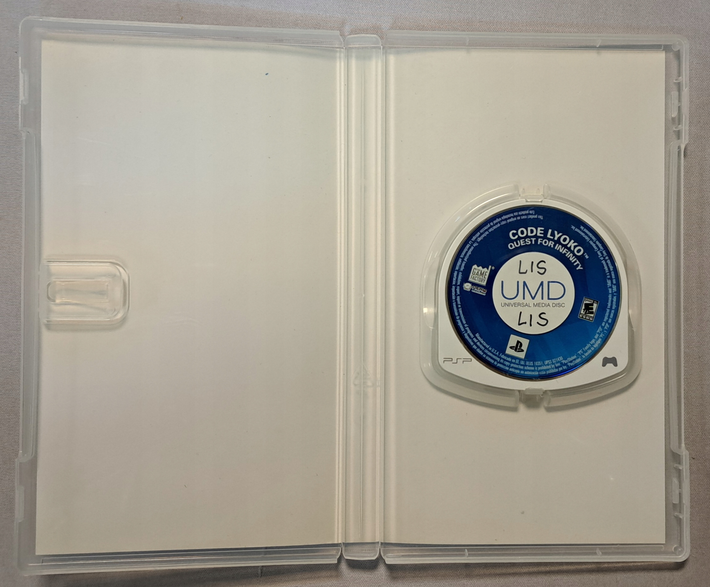 Примечание: игра без буклета, на корешке обложки наклейка с кодом из предыдущего магазина, надписи на УМД - все видно на фотографиях.