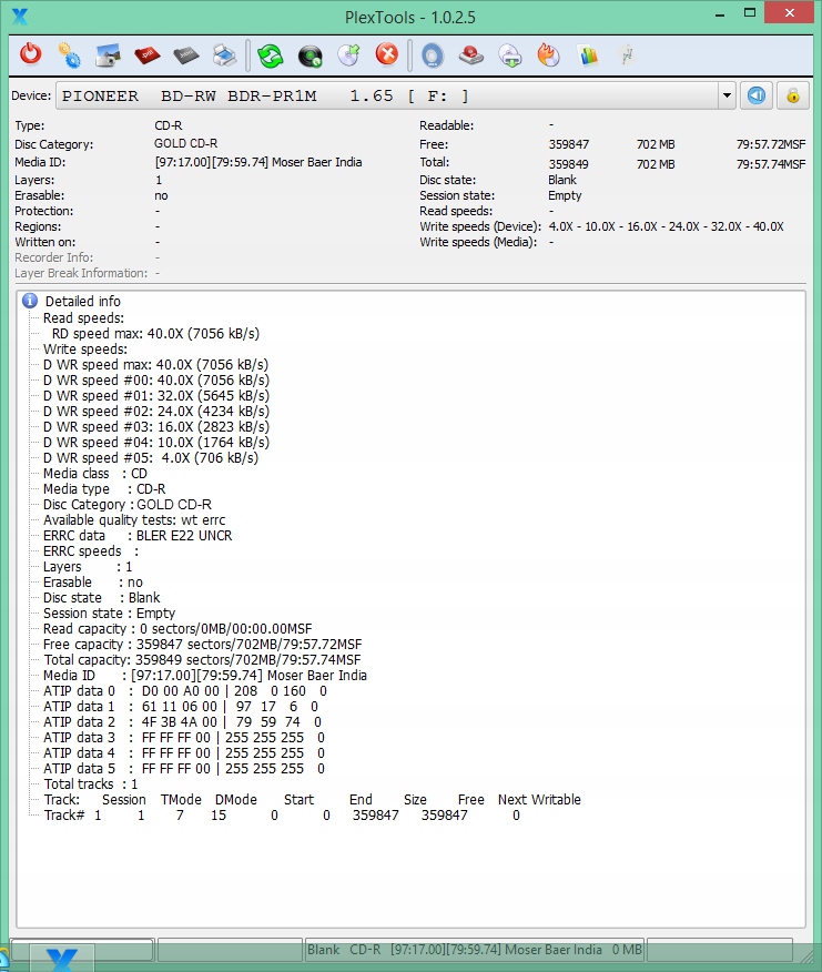 Производитель\логотип Kodak CD-R 700MB GOLD Professional- Прессовый завод Kodak \MBI MID: -ATIP\MID: 97m17s06f(идентификатор производителя)- . версия: логотип