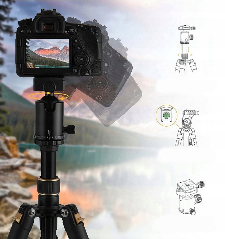 Вращающаяся на 360 градусов шаровая головка с вертикальным фиксатором на 90 градусов позволяет делать снимки фотографии вертикально и горизонтально.