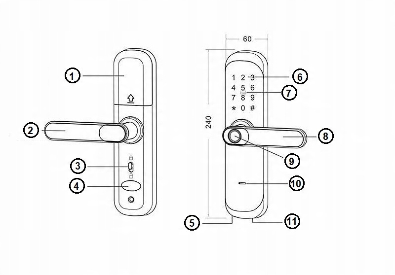 - Электронная ручка, открытая на карту отпечатков пальцев/RFID, PIN -код, временный контактный код и стандартный ключ