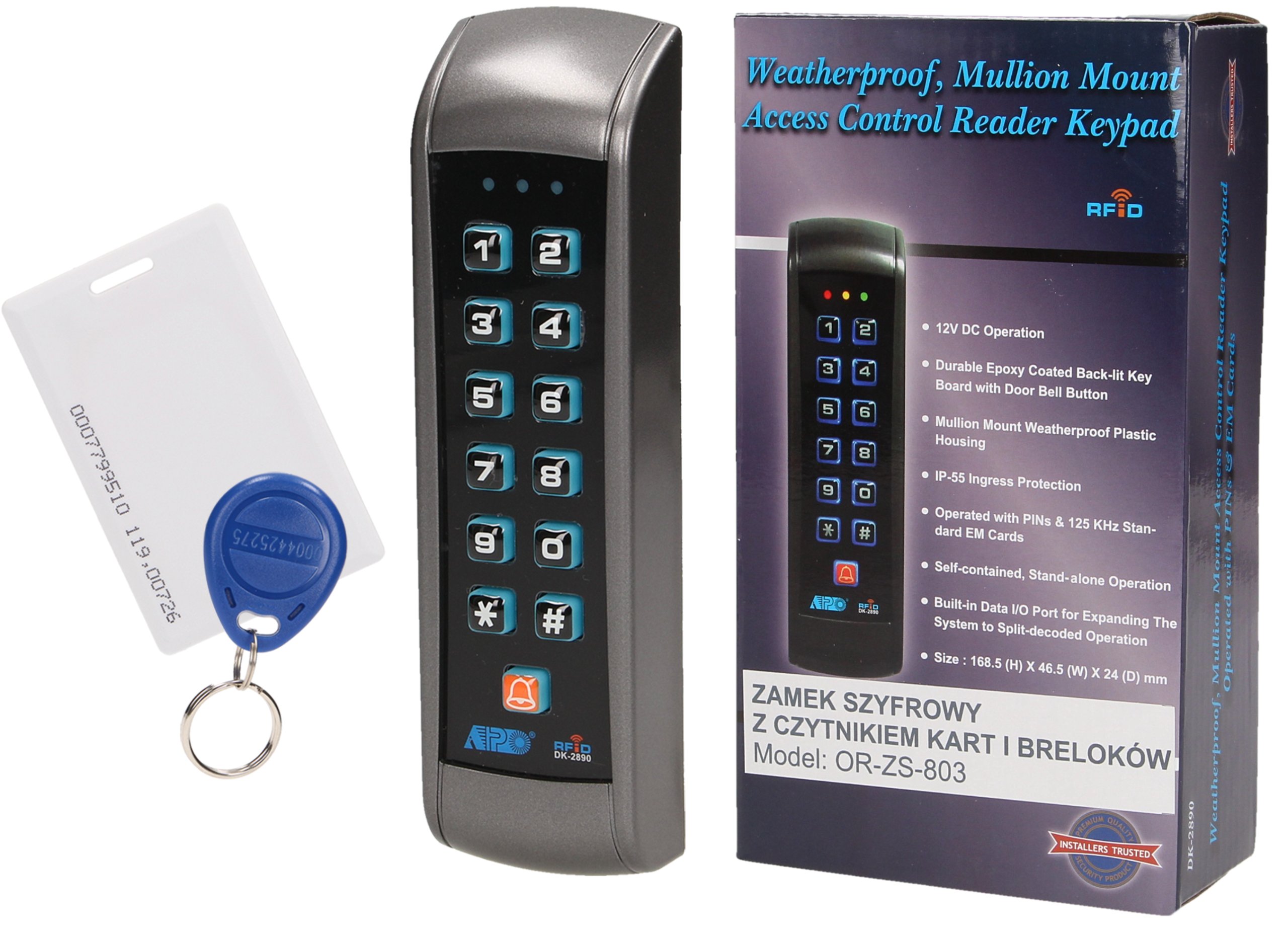 Кодовый замок OR-ZS-803 представляет собой устройство, сочетающее в себе функции цифровой клавиатуры контроля доступа и считывателя бесконтактных карт. Он может работать независимо или как часть более сложной системы. Считыватель работает в стандарте 125 кГц и поддерживает все бесконтактные карты и брелоки, соответствующие этому стандарту.