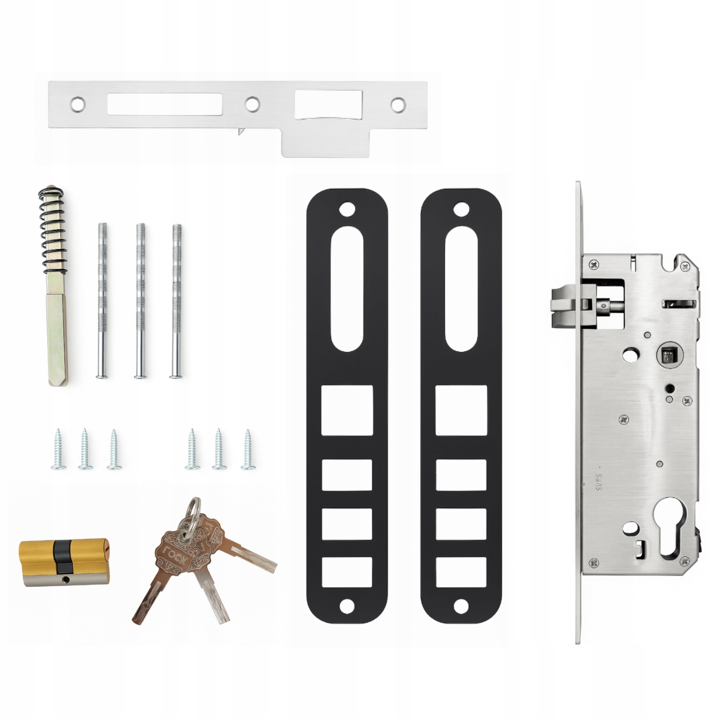 - 1x Замок врезной с расстоянием 85/50 мм (в комплекте использовать не нужно, можно использовать уже установленный в двери собственный замок)